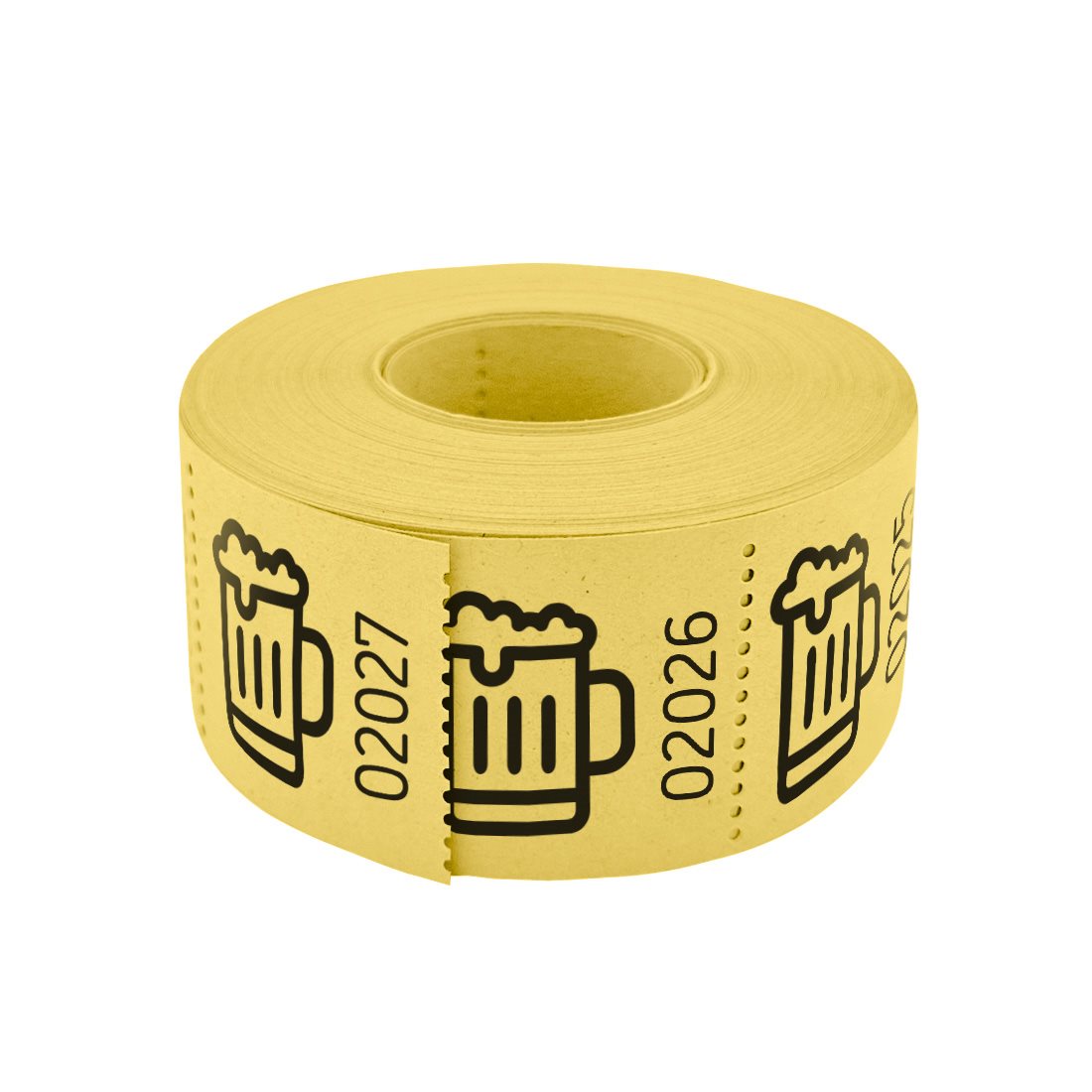 Yellow tickets with a beer icon and ascending numbering. Ideal for events and parties. The 30x30 mm tickets are perforated each, making them easy to tear off. Available on a roll of 500 tickets.