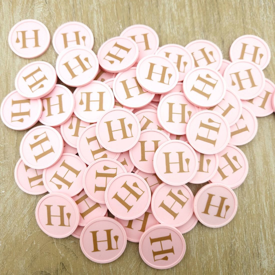 Your tokens are packed in a strong, sealed plastic bag. If you order multiple sets in the same color and print, we will pack them together in one bag. Please note: for smaller quantities, the print may not always be exactly centered due to the type of machine used. This is most noticeable with round tokens. If you choose a different shape, it will be less visible. For orders of 6,000 pieces or more, we can center the print precisely.