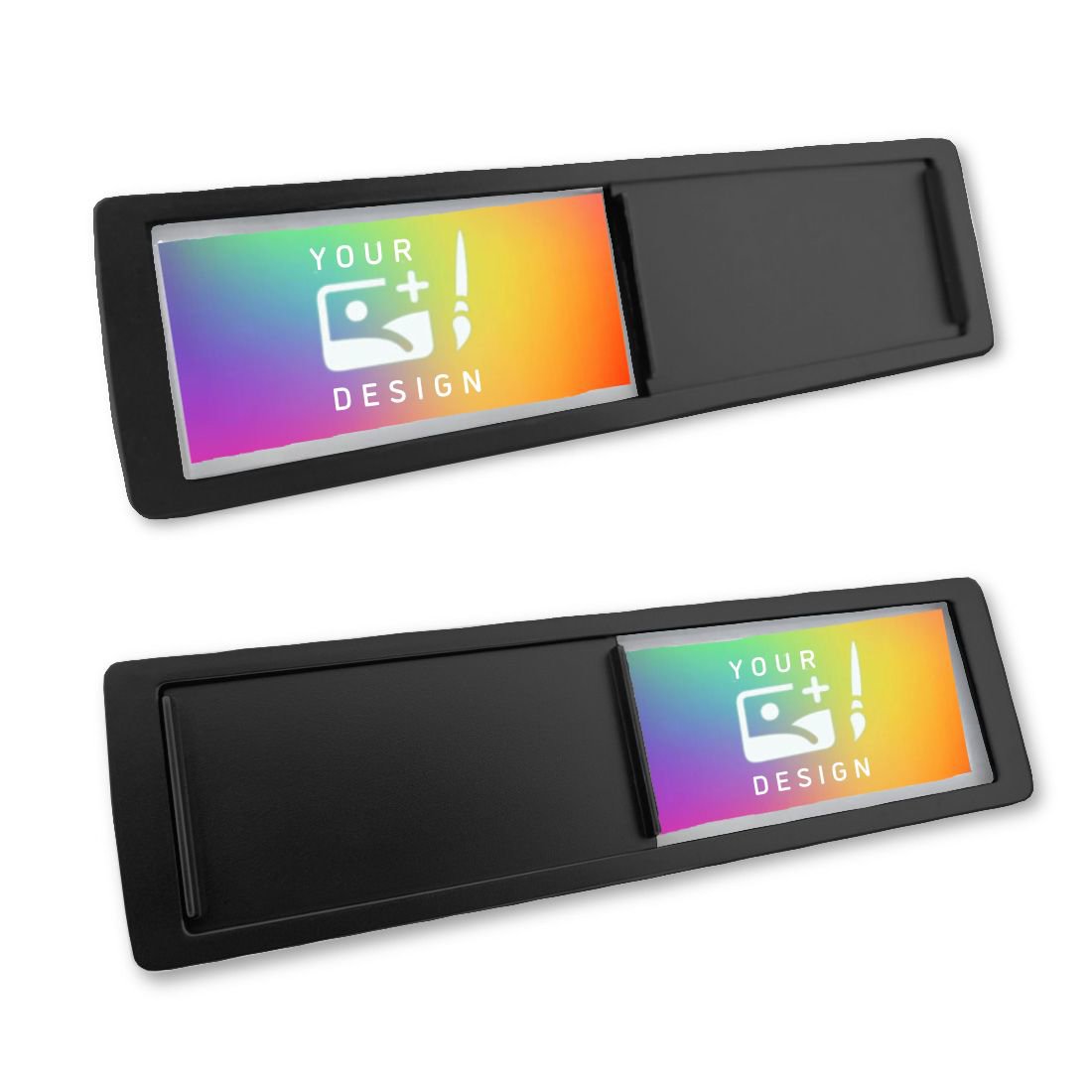 Create your own sliding sign for offices, hotels, or at home. Choose a black or silver sign and set your own background color, text, and images. Comes with 3M tape on the back for easy mounting. Size is 178 x 50 x 8 mm.