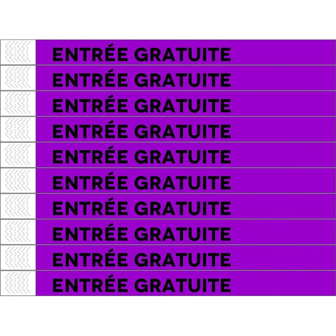 Entrée gratuite Tyrex wristbands, measuring 248 x 19 mm. These wristbands allow free entry and are ideal for events. Each pack contains 100 wristbands with numbering and a strong adhesive strip. Read more