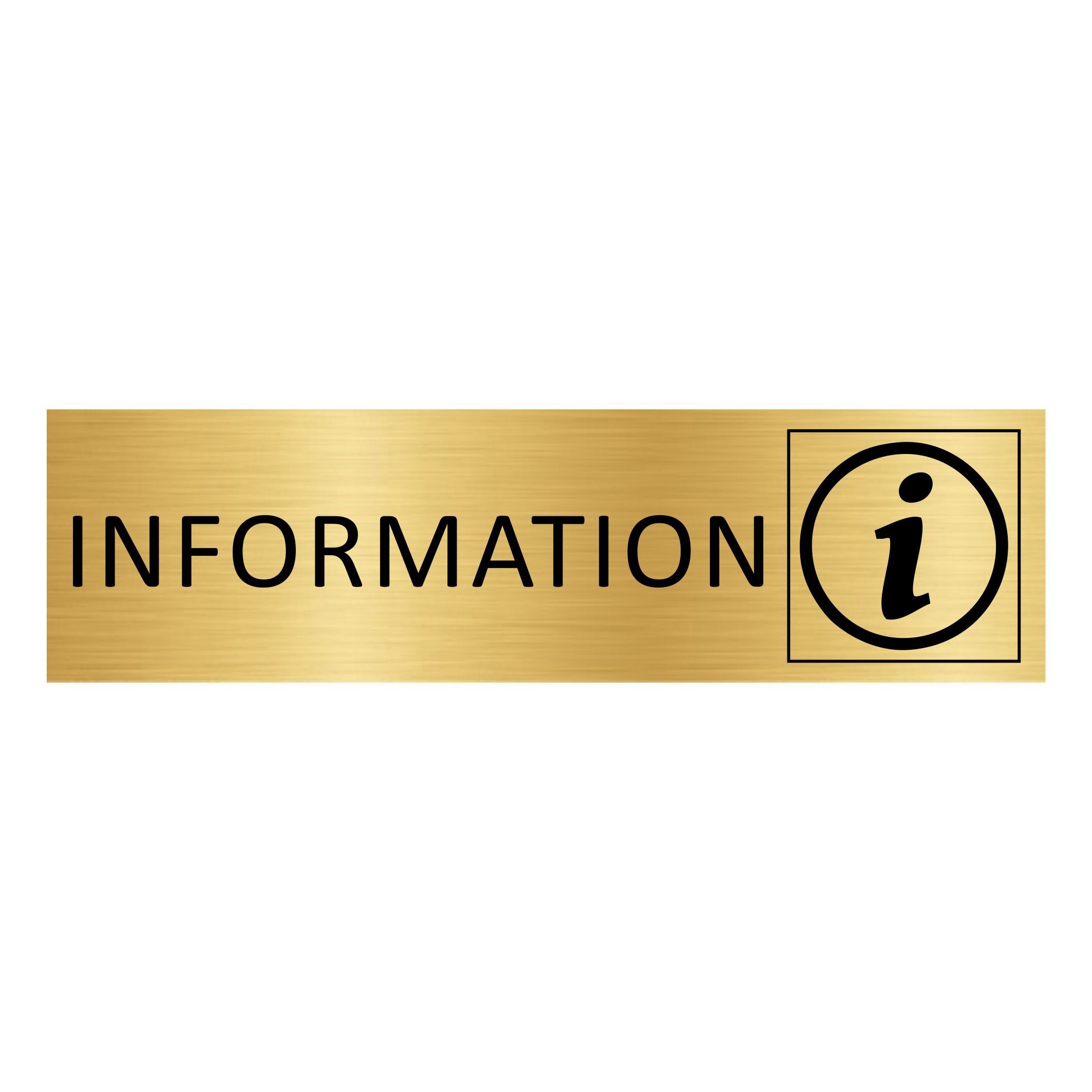 Gold-colored door sign featuring the text 'Information', made of high quality aluminum. The sign measures 165 x 45 mm and has double-sided tape for easy mounting. Suitable for indoor and outdoor use. Sold individually. Read more