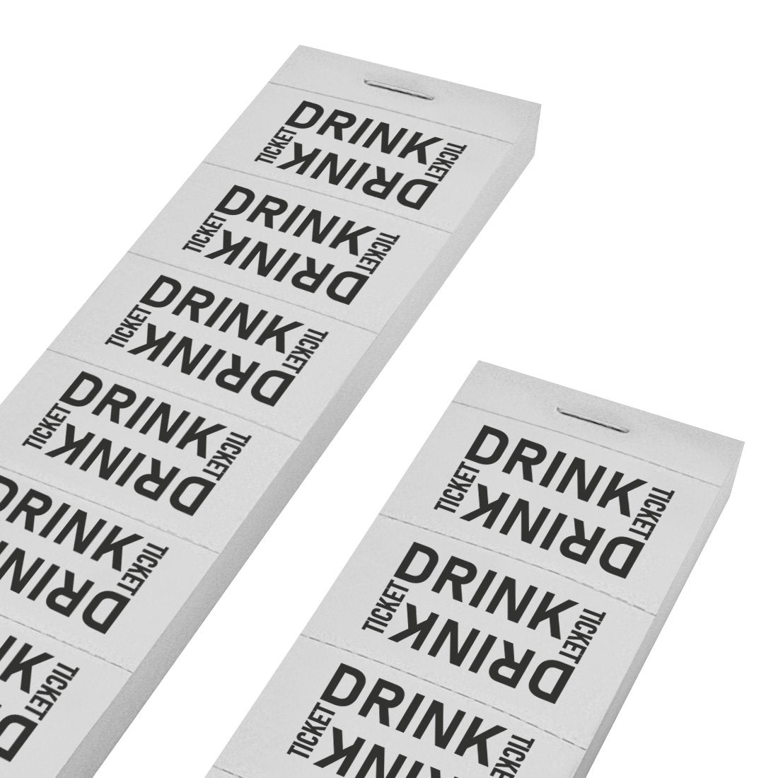 Modern ticket of 1.96 inch x 1.08 inch with the text 'drink ticket'. The universal design allows you to use them at various get-togethers and parties. The tickets are perforated each, making them easy to tear off. Per 1000 tickets.