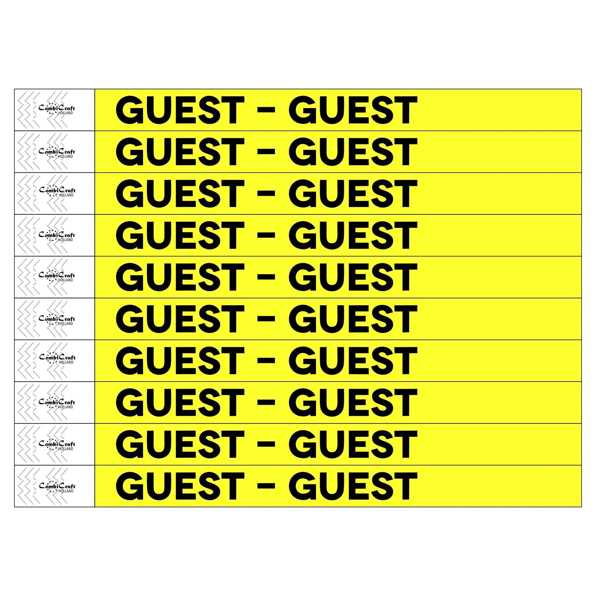 Guest Tyrex wristbands to identify guests at parties, event and all kinds of activities. The wristbands measure 248 x 19 mm. Each pack contains 100 wristbands with numbering and a strong adhesive strip. Read more