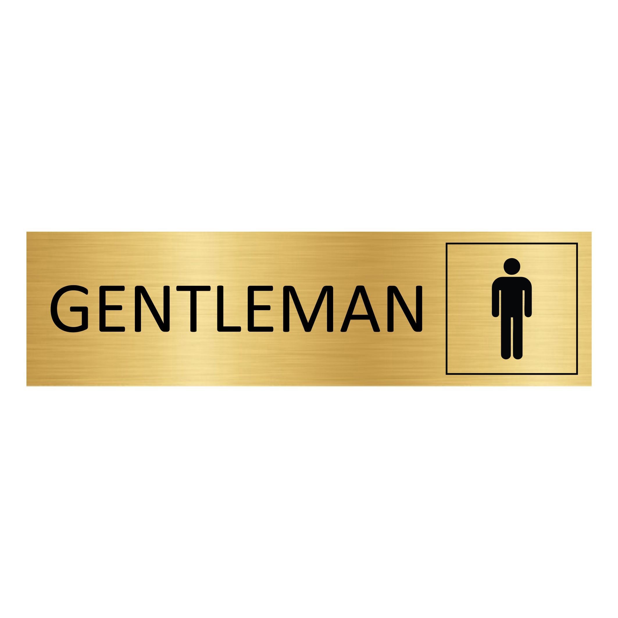 Gold-colored door sign featuring the text 'Gentleman', made of high quality aluminum. The sign measures 165 x 45 mm and has double-sided tape for easy mounting. Suitable for indoor and outdoor use. Sold individually.