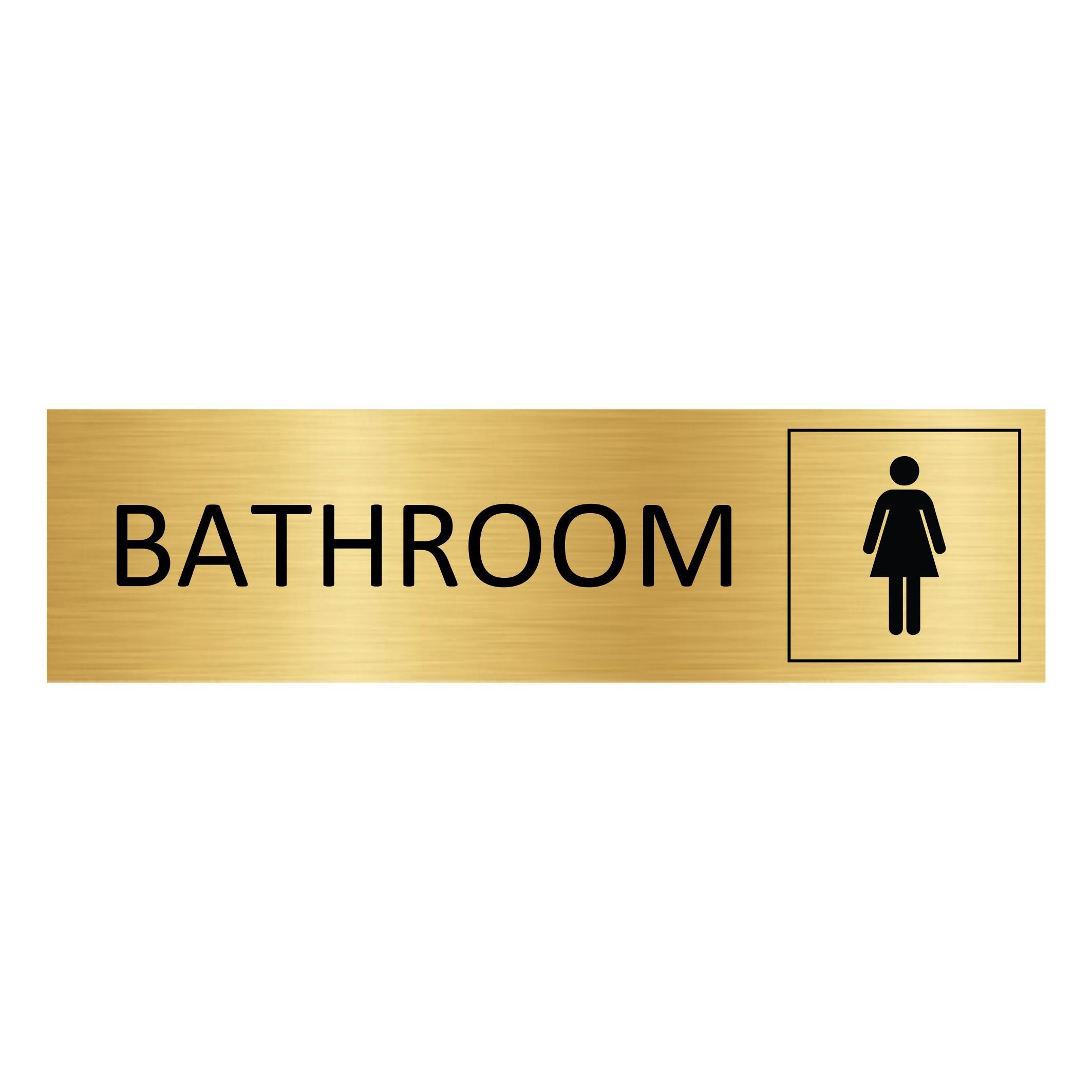 Gold-colored door sign featuring the text 'Bathroom', made of high quality aluminum. The sign measures 165 x 45 mm and has double-sided tape for easy mounting. Suitable for indoor and outdoor use. Sold individually. Read more
