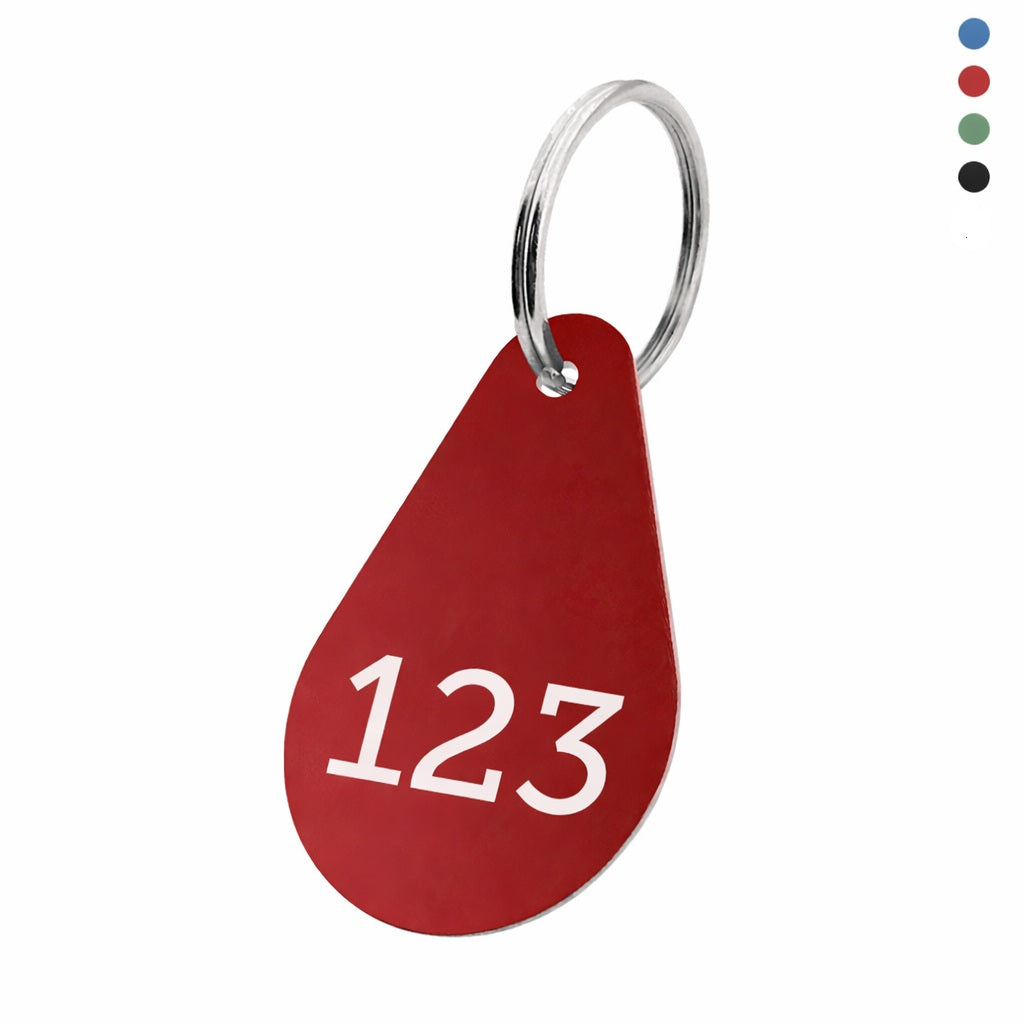 The custom droplet-shaped key tag in 29 x 45 mm can be engraved with any numbering you choose, making it an ideal solution for organizing your keys. It is made of anodized aluminum and available in various colors. Sold individually.