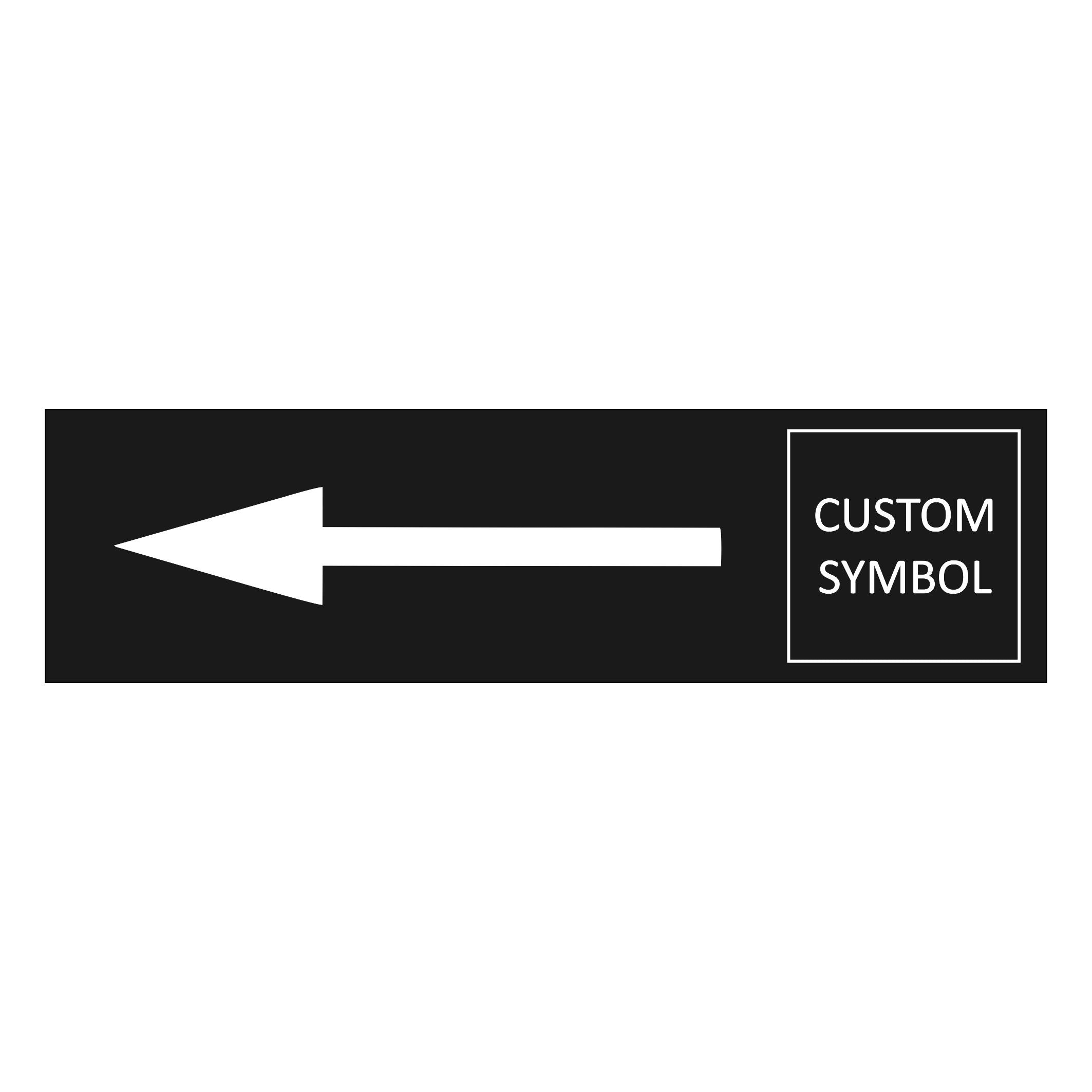 Arrow left and symbol black door sign in black aluminum 165 x 45 mm - 1 piece