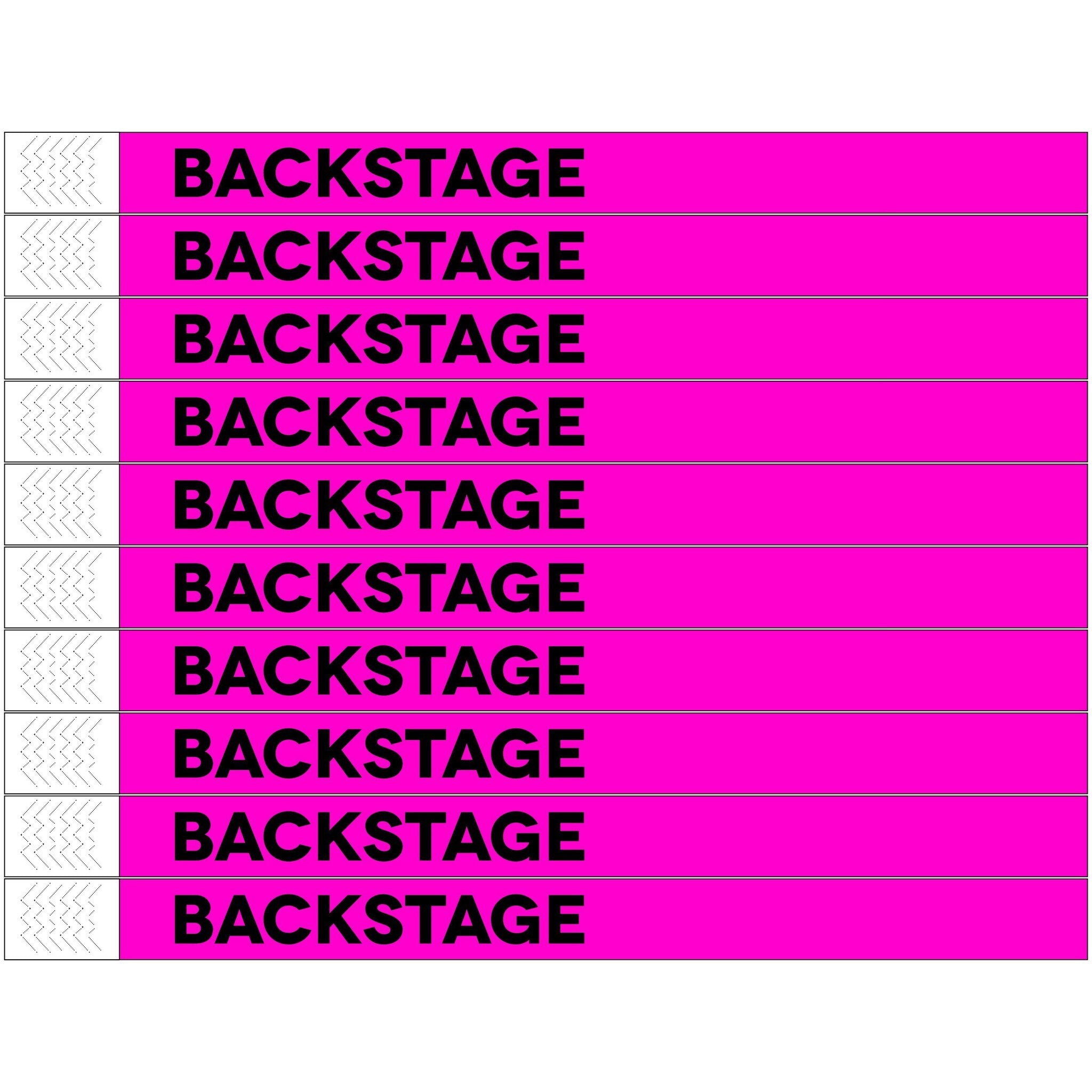 Backstage Tyrex wristbands for identifying backstage guests at large and small parties, events, and festivals. The wristbands measure 248 x 19 mm. Each pack contains 100 wristbands. Read more