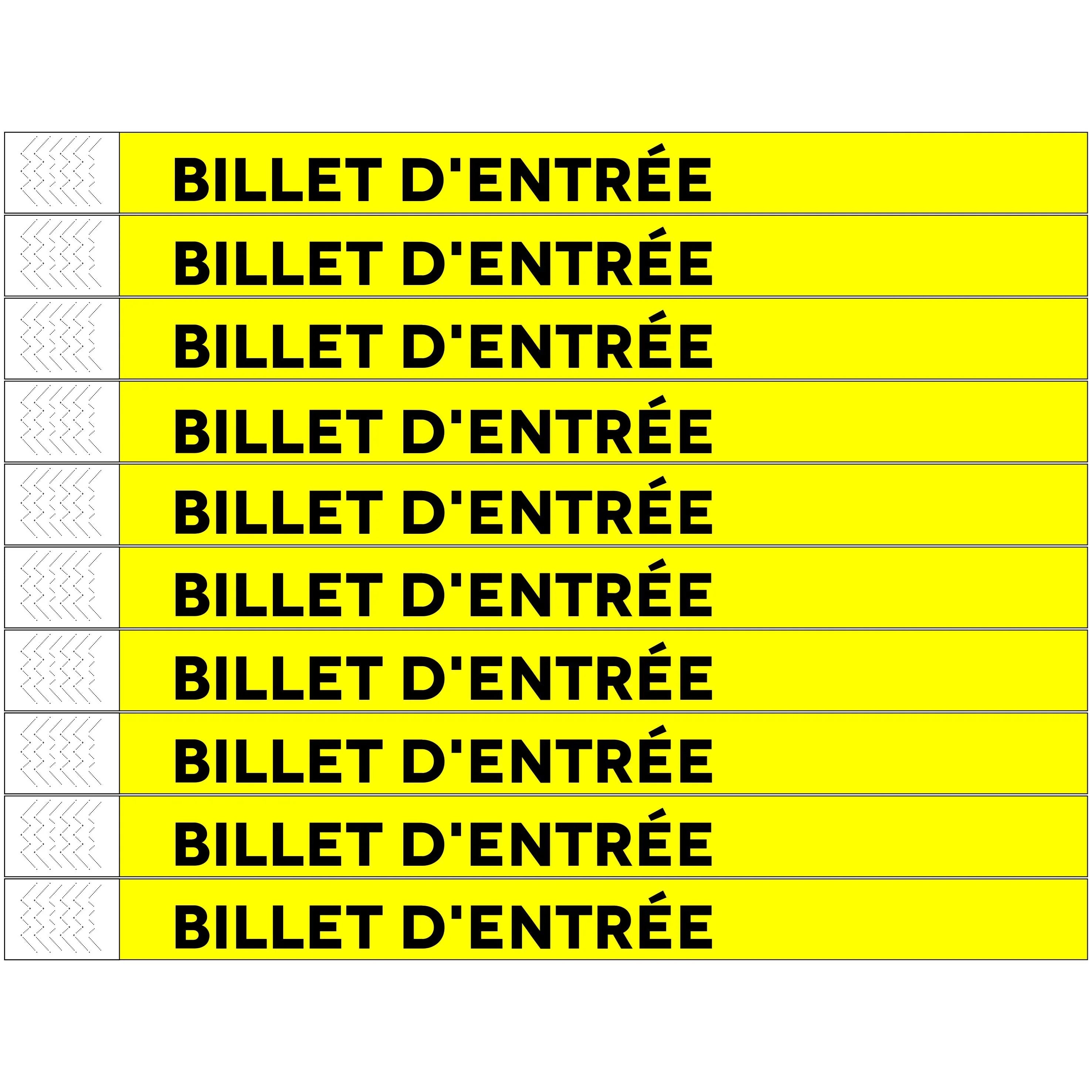 Billet d'entrée Tyrex wristbands, measuring 248 x 19 mm. Used as entry tickets for events. Each pack contains 100 wristbands with numbering and a strong adhesive strip. Read more