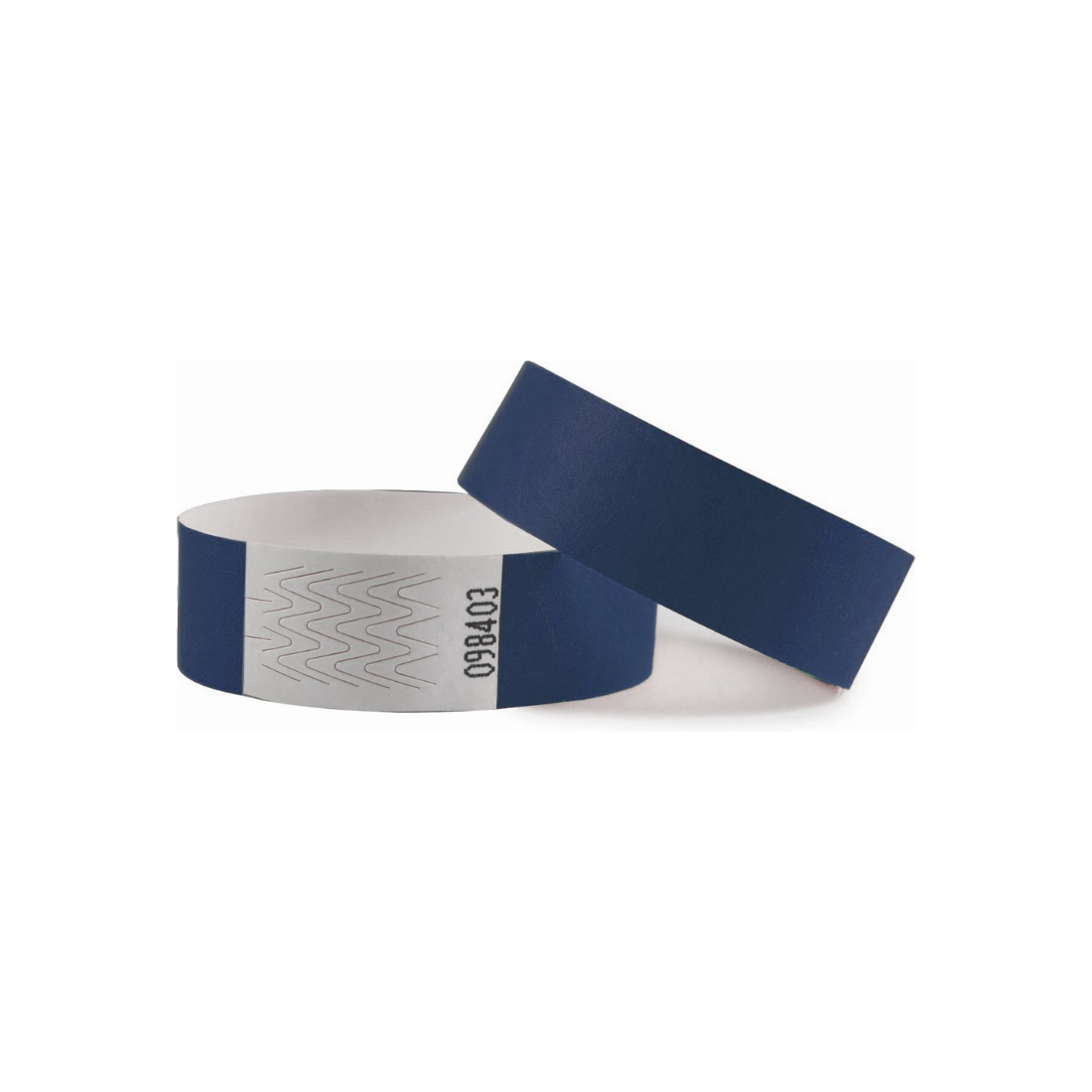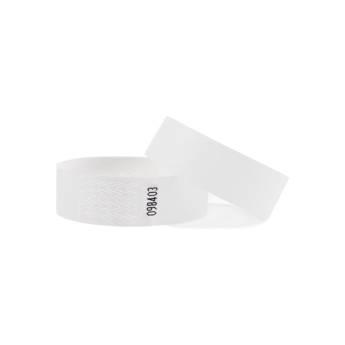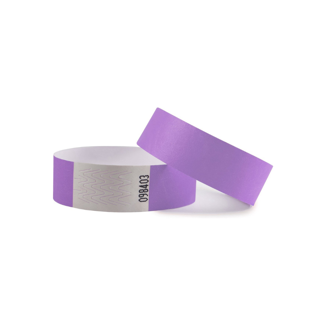 Blank Tyvek wristbands measuring 248 x 19 mm, available in several bright colors. Delivered on sheets of 10 wristbands each, with 10 sheets per pack. Includes numbering and a strong adhesive strip.