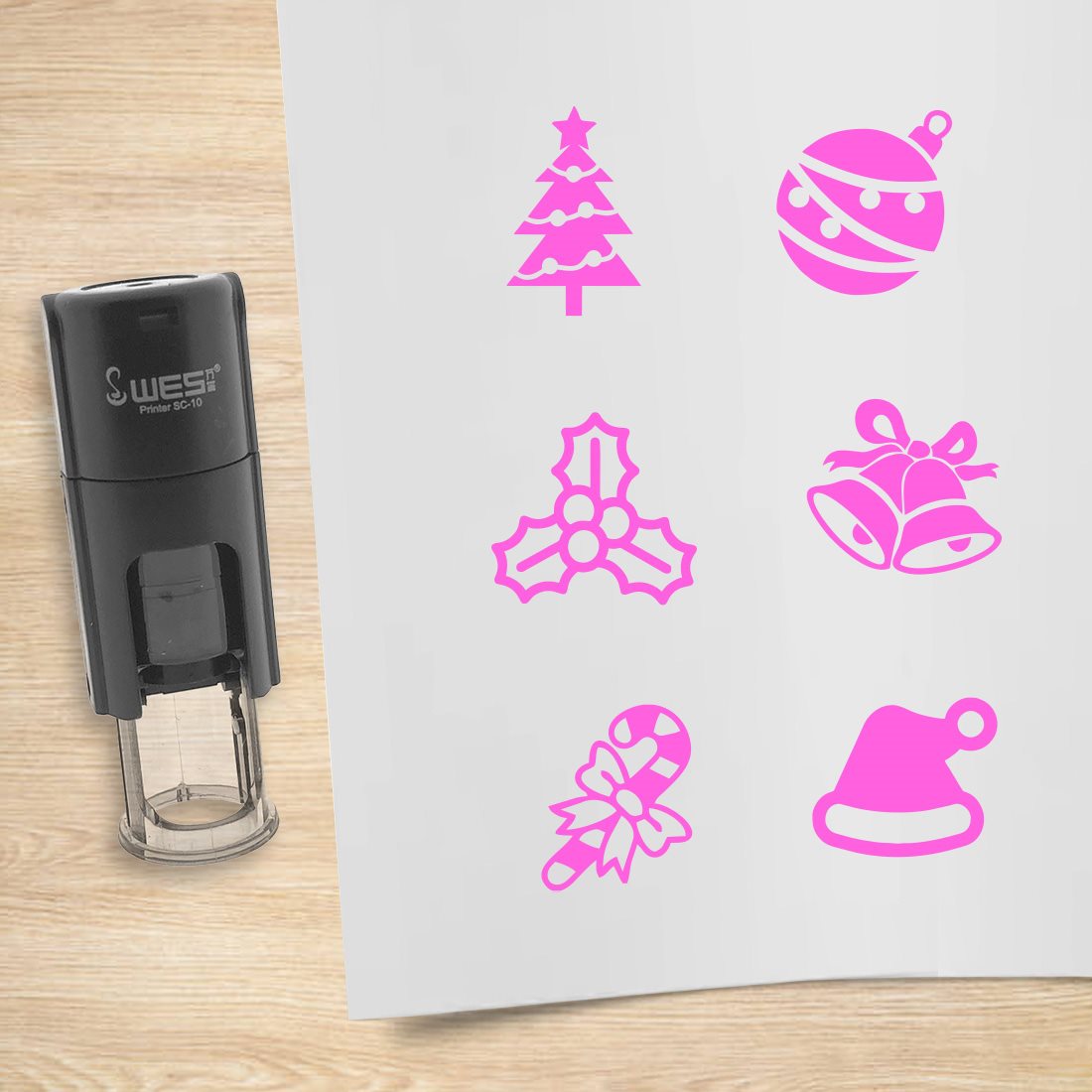 This Christmas stamp set includes: a Christmas tree, mistletoe, candy cane, Christmas ornament, jingle bells, and a Santa hat. A complete Christmas-themed set for your bullet journals, calendars, planners, gifts, and much more. The print surface is approximately 10 mm. Each stamp has an internal ink pad that you can refill with ink. Read more