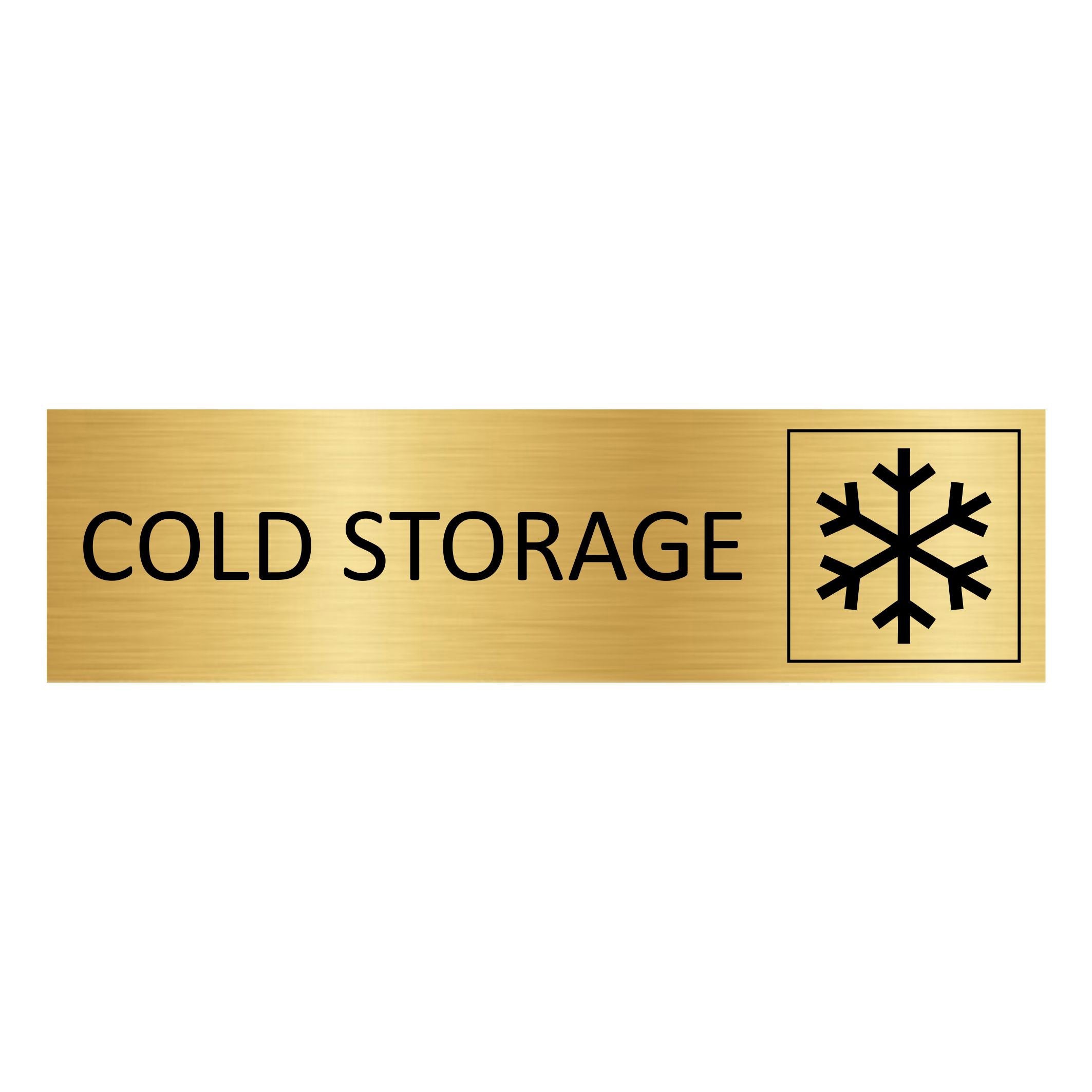 Gold-colored door sign featuring the text 'Cold storage', made of high quality aluminum. The sign measures 165 x 45 mm and has double-sided tape for easy mounting. Suitable for indoor and outdoor use. Sold individually. Read more