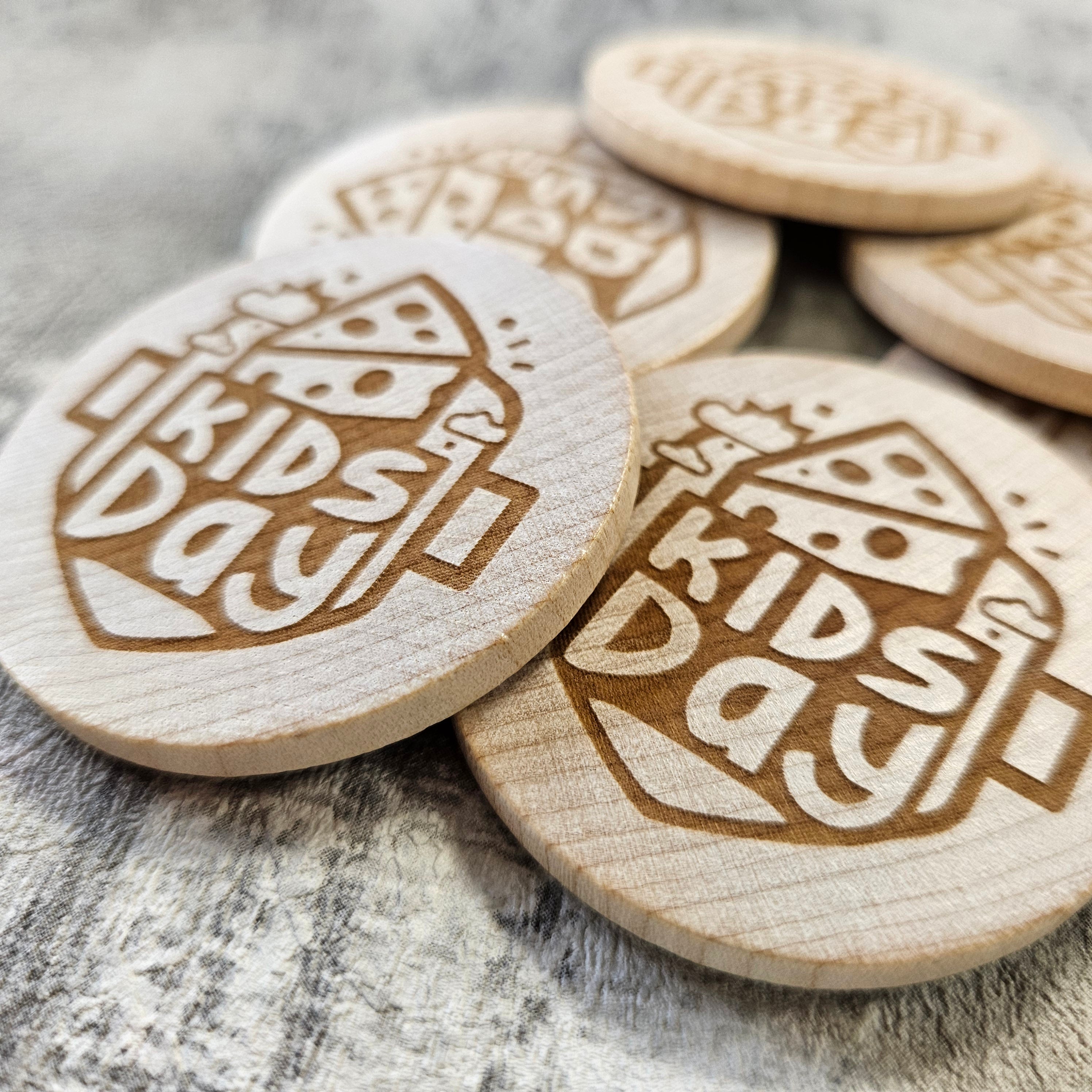 Fichas de madera grabadas personalizadas Ø50 mm - 100 unidades