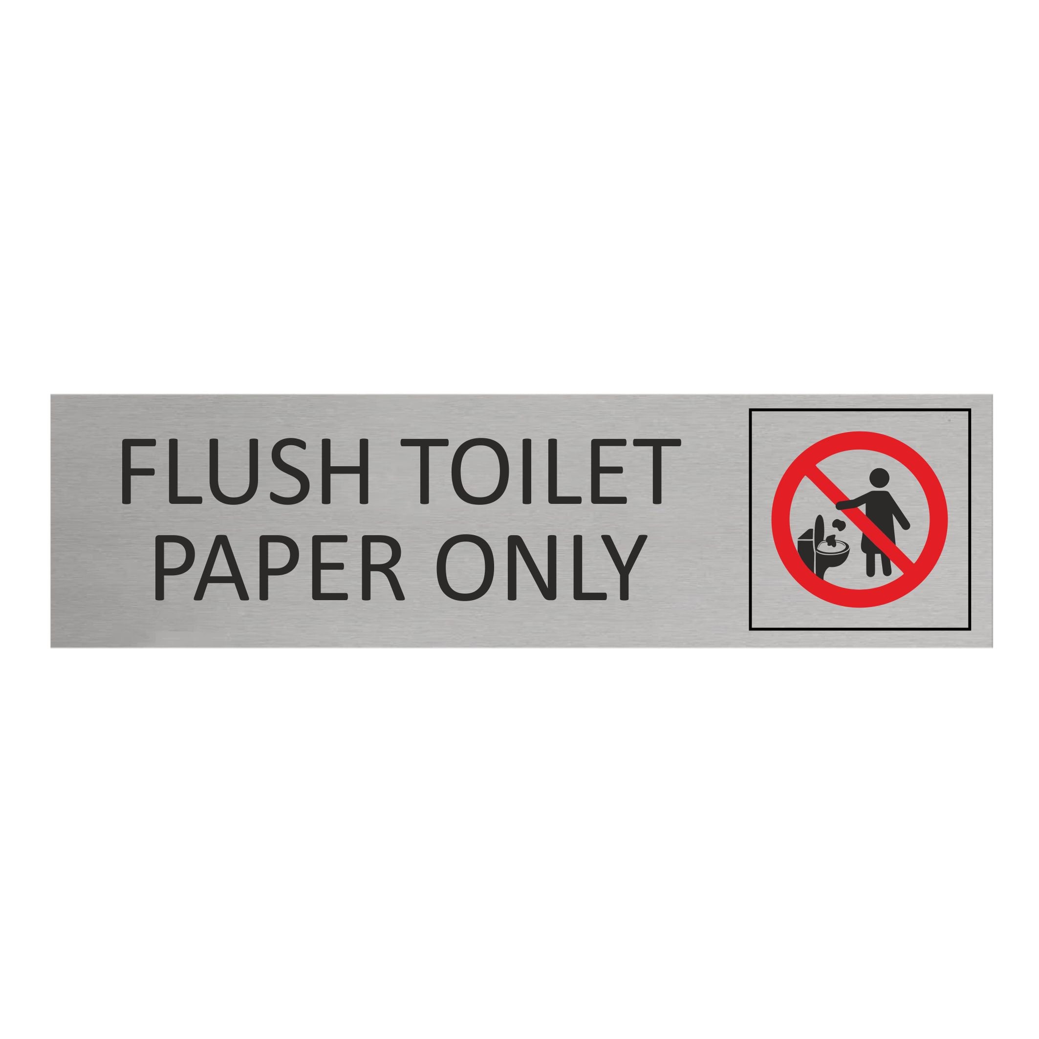 Flush toilet paper only aluminum door sign 165 x 45 mm - 1 piece