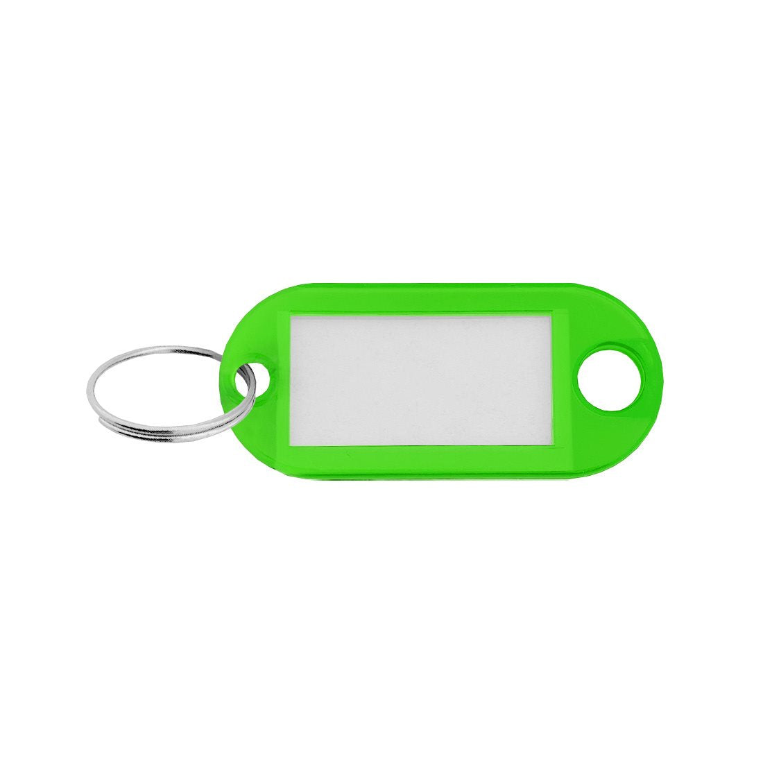 Colored key tags with paper label, ideal for organizing keys or key sets. The writable insert is protected by a clear acetate cover. Each tag measures 48 x 22 mm and has a one-sided window. Sold in sets of 100 pieces.