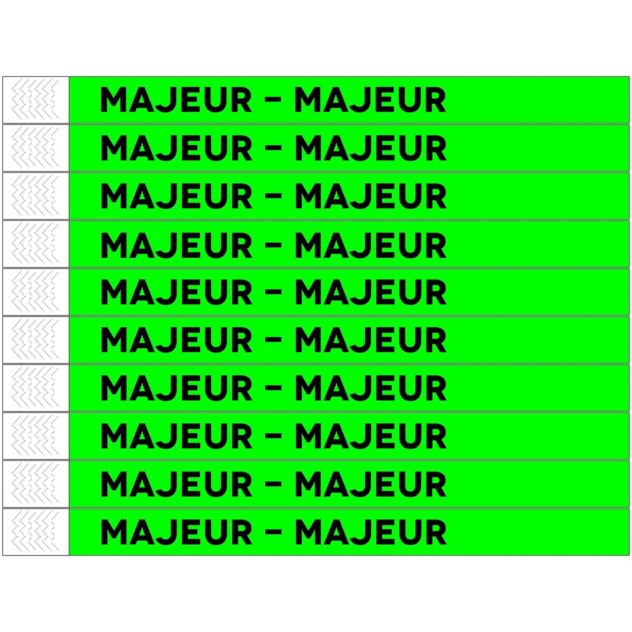 Majeur Tyrex wristbands measuring 248 x 19 mm. These wristbands are used to mark legal adults at events or clubs. Each pack contains 100 wristbands with numbering and a strong adhesive strip for secure wear.