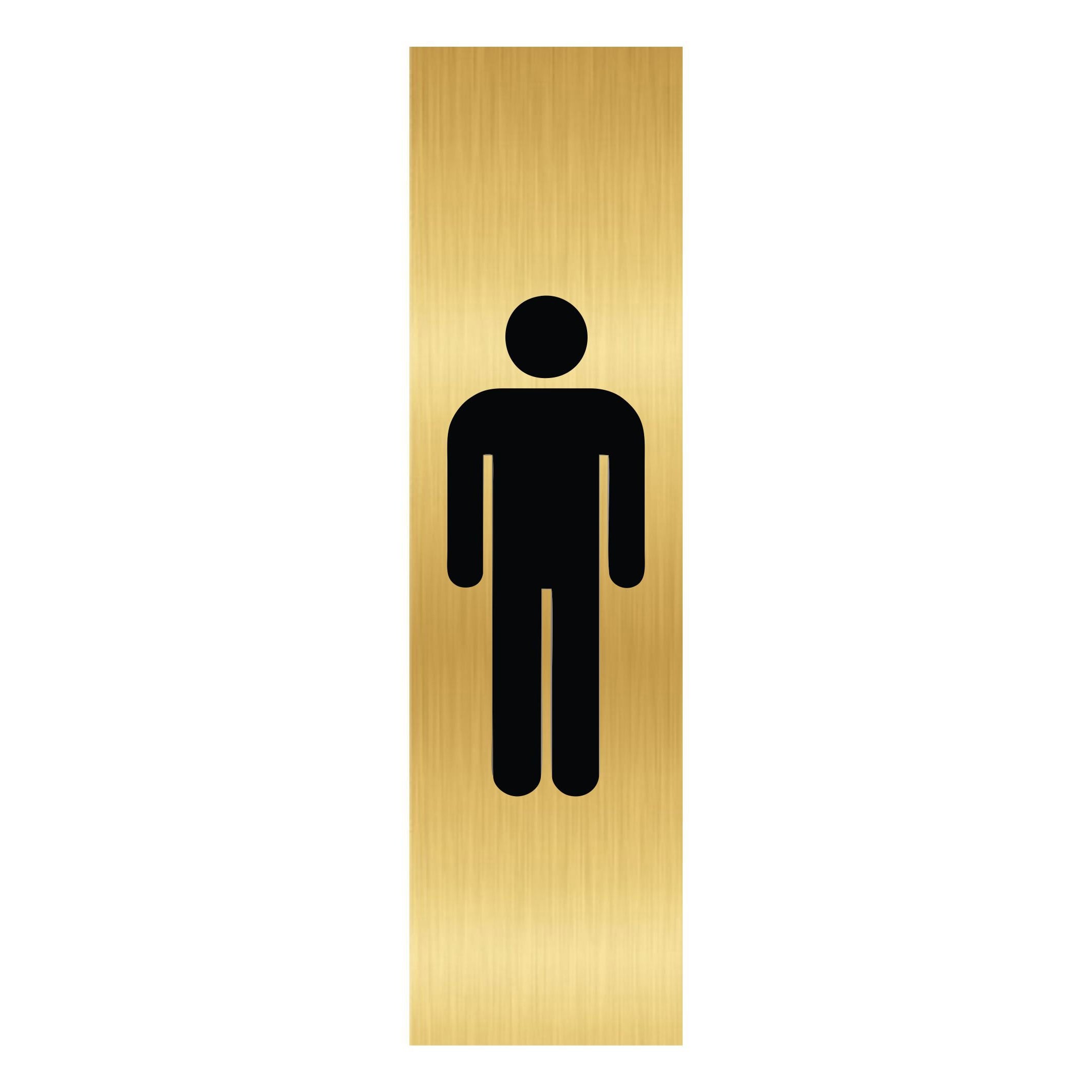 Door sign with a men’s symbol, made of gold-colored aluminum. The sign measures 165 x 45 mm and has double-sided tape for easy mounting. Suitable for indoor and outdoor use. Sold individually. Read more