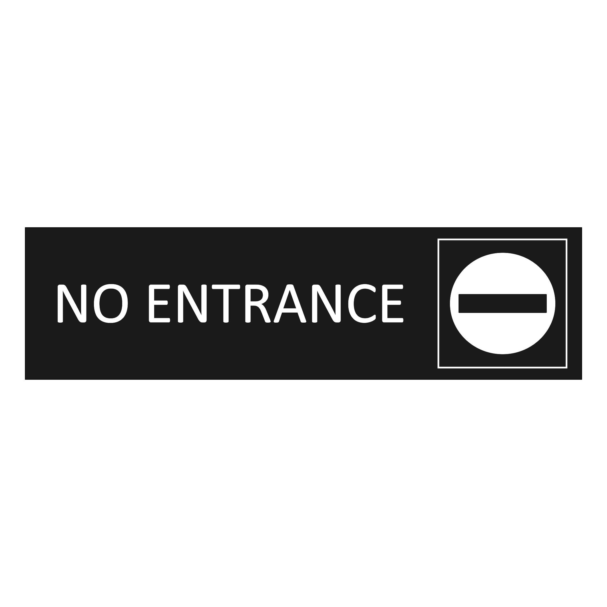 Black door sign featuring the text 'No entrance', made of high quality aluminum. The sign measures 165 x 45 mm and has double-sided tape for easy mounting. Suitable for indoor and outdoor use. Sold individually.