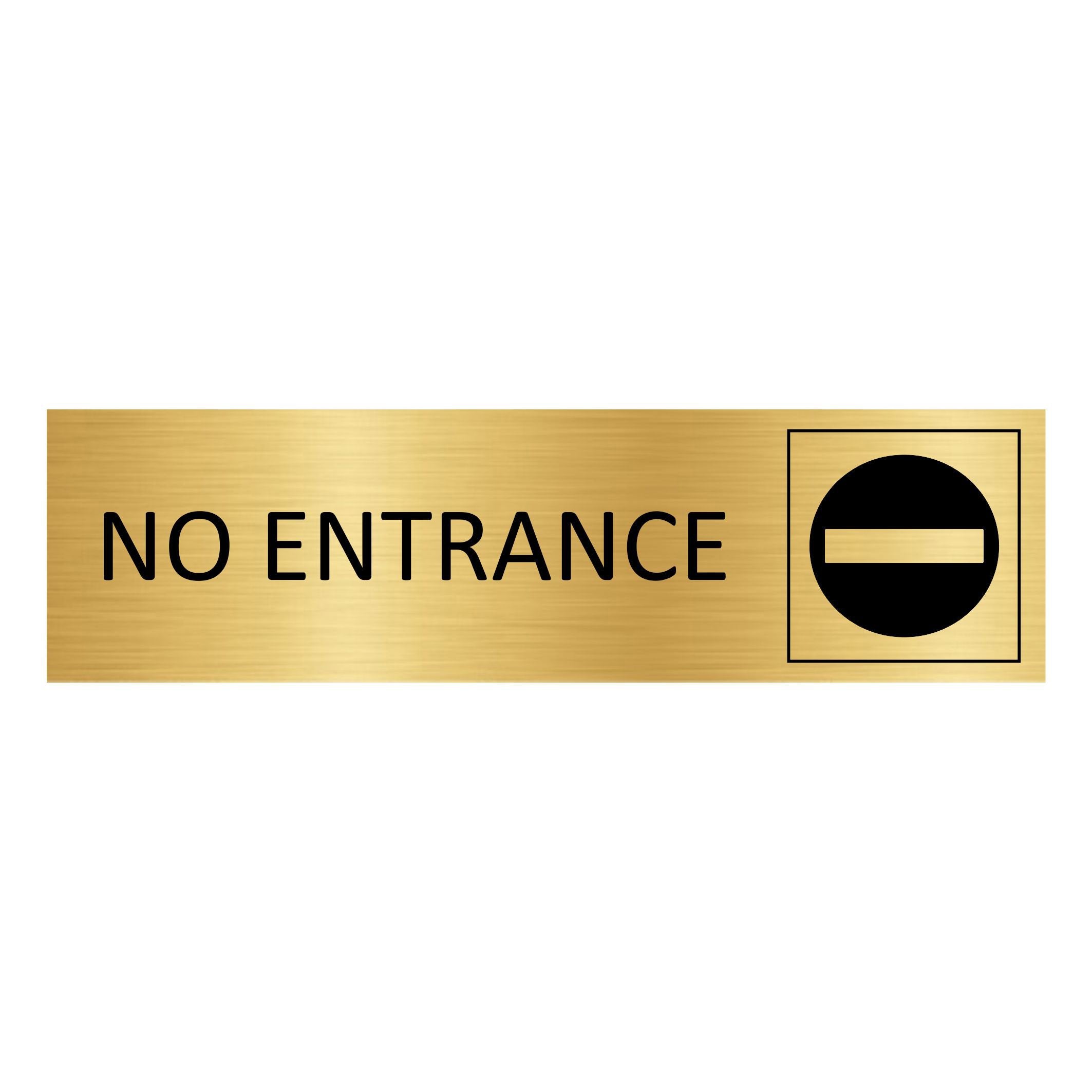 Gold-colored door sign featuring the text 'No entrance', made of high quality aluminum. The sign measures 165 x 45 mm and has double-sided tape for easy mounting. Suitable for indoor and outdoor use. Sold individually.