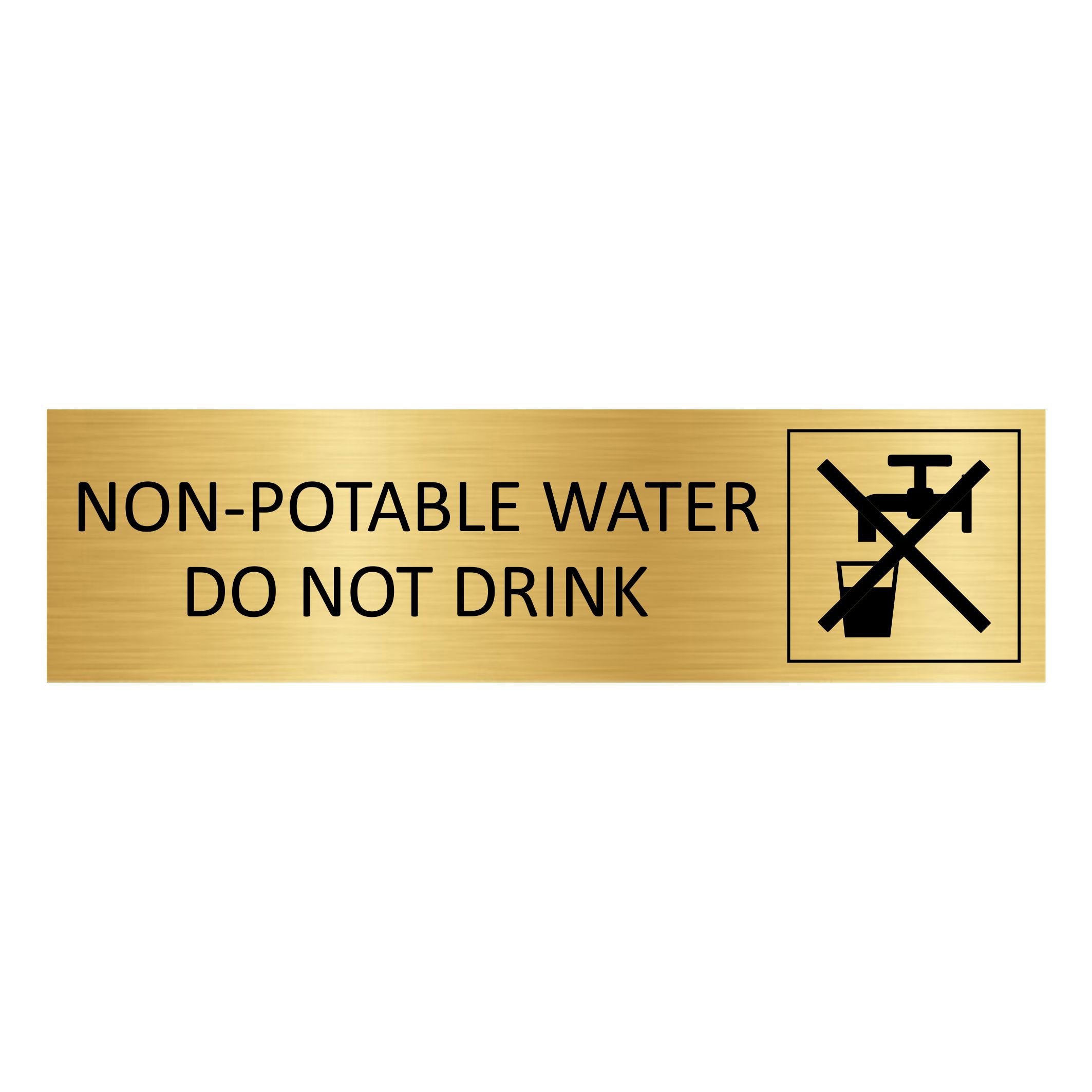 Gold-colored door sign featuring the text 'Non-potable water', made of high quality aluminum. The sign measures 165 x 45 mm and has double-sided tape for easy mounting. Suitable for indoor and outdoor use. Sold individually. Read more