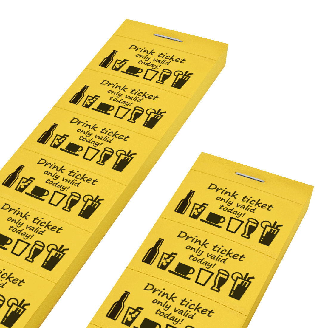 Ticket of 1.96 inch x 1.08 inch with the text 'Drink ticket valid today only'. The universal design allows you to use them at different events. Each ticket is perforated, making them easy to tear off. Per 1000 tickets. Read more