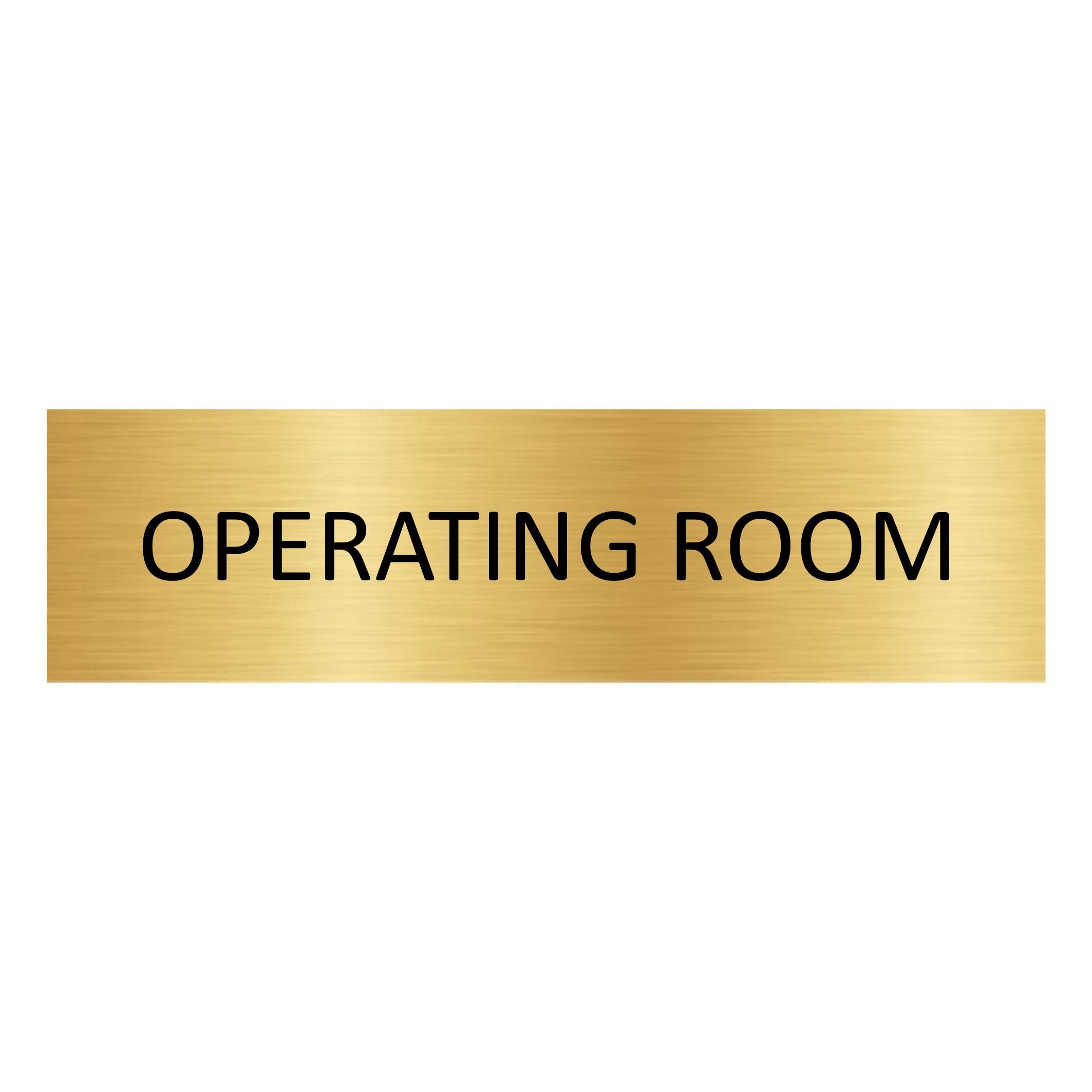 Gold-colored door sign featuring the text 'Operating room', made of high quality aluminum. The sign measures 165 x 45 mm and has double-sided tape for easy mounting. Suitable for indoor and outdoor use. Sold individually. Read more