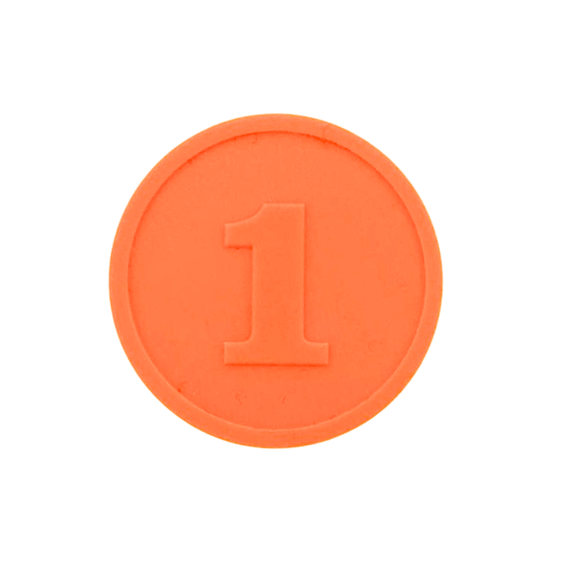 Plastic embossed tokens with the number 1 on both sides. Available in various colors. Each token measures 29 x 2.35 mm. Ideal as a festival token, drink token, or bar token at a party or event. Sold in packs of 250 tokens. Read more
