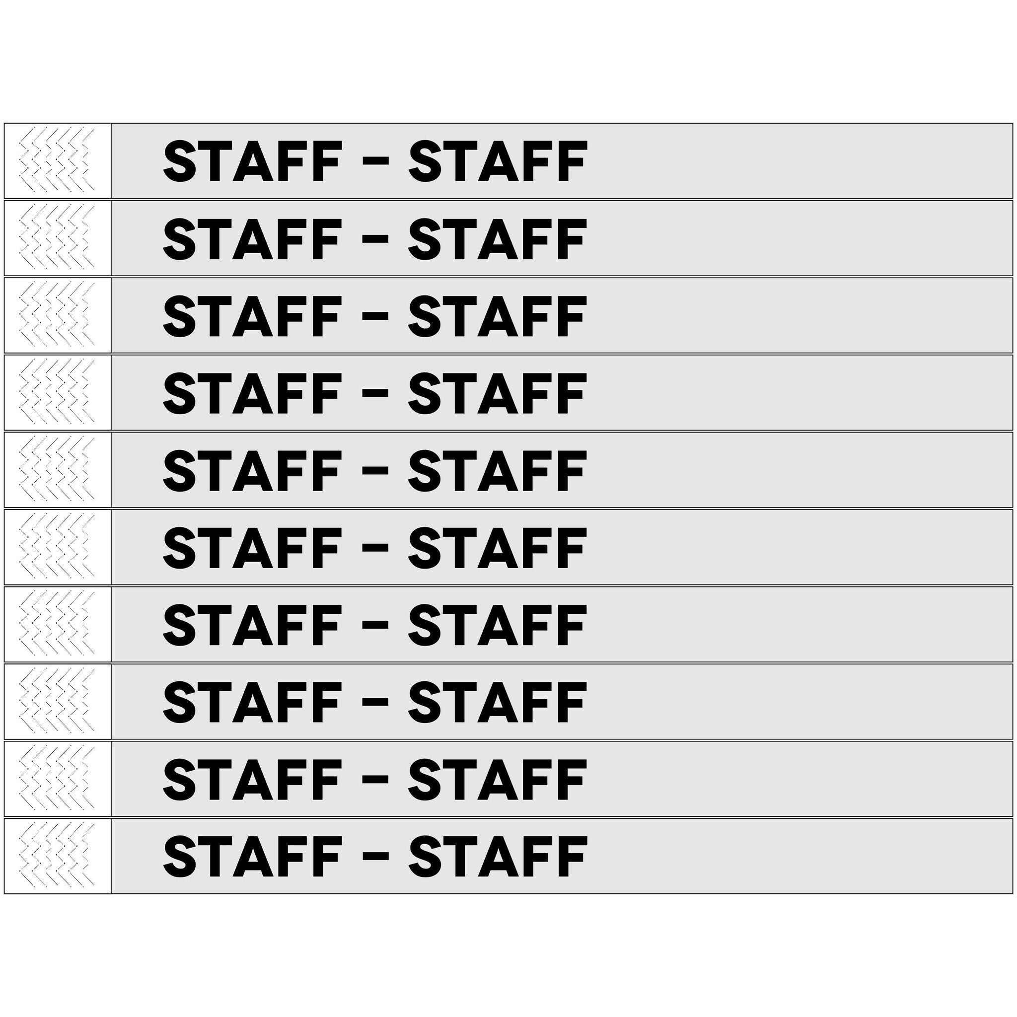 Staff Tyrex wristbands, measuring 248 x 19 mm. Used for event staff identification at school trips, parties or festivals. Each pack contains 100 wristbands with numbering and a strong adhesive strip.