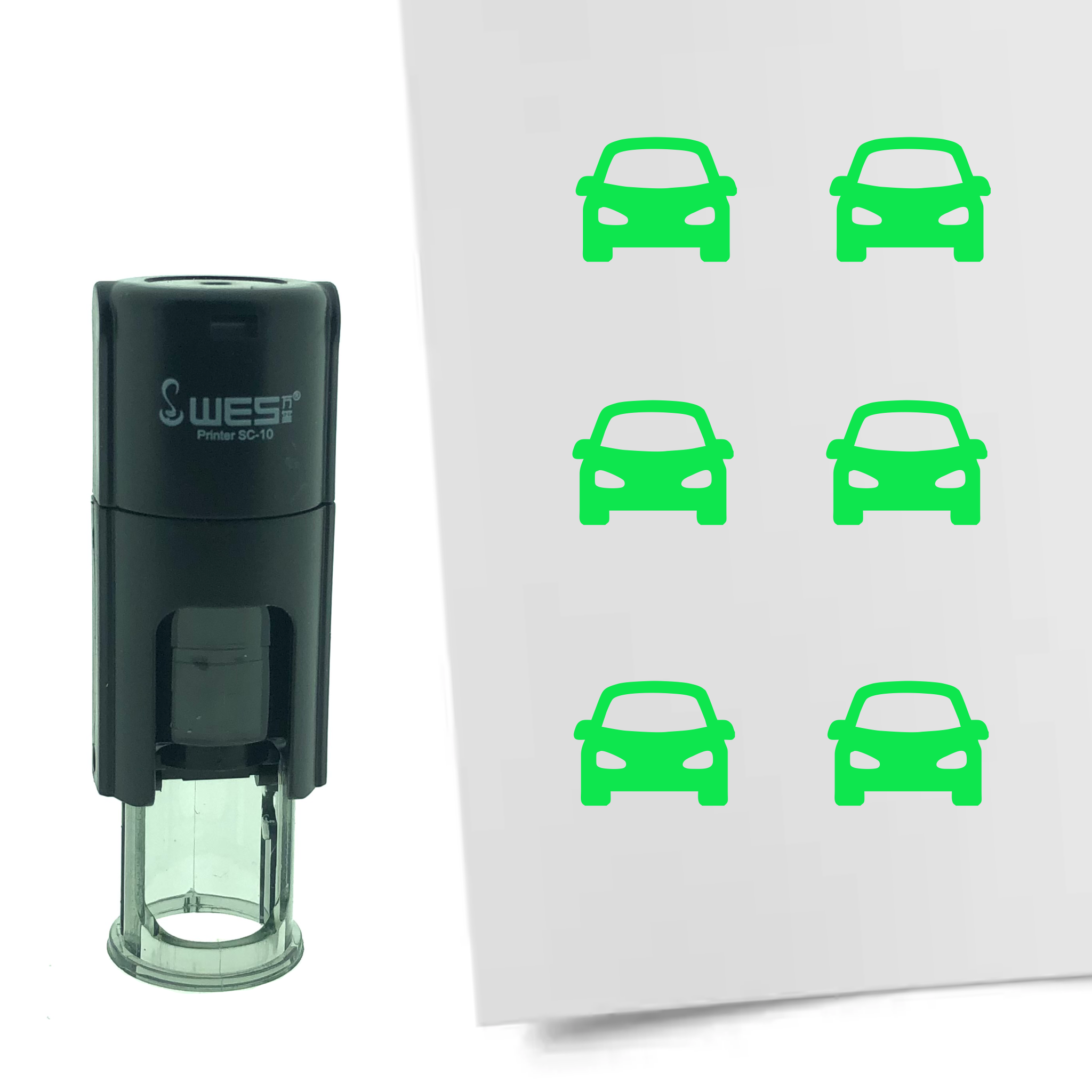 Mini stamp with a 10 mm round print of a car in 6 colors. The stamp can be used for stamping loyalty cards, punch cards, bullet journals, planners, and more. It has a refillable ink pad. Read more