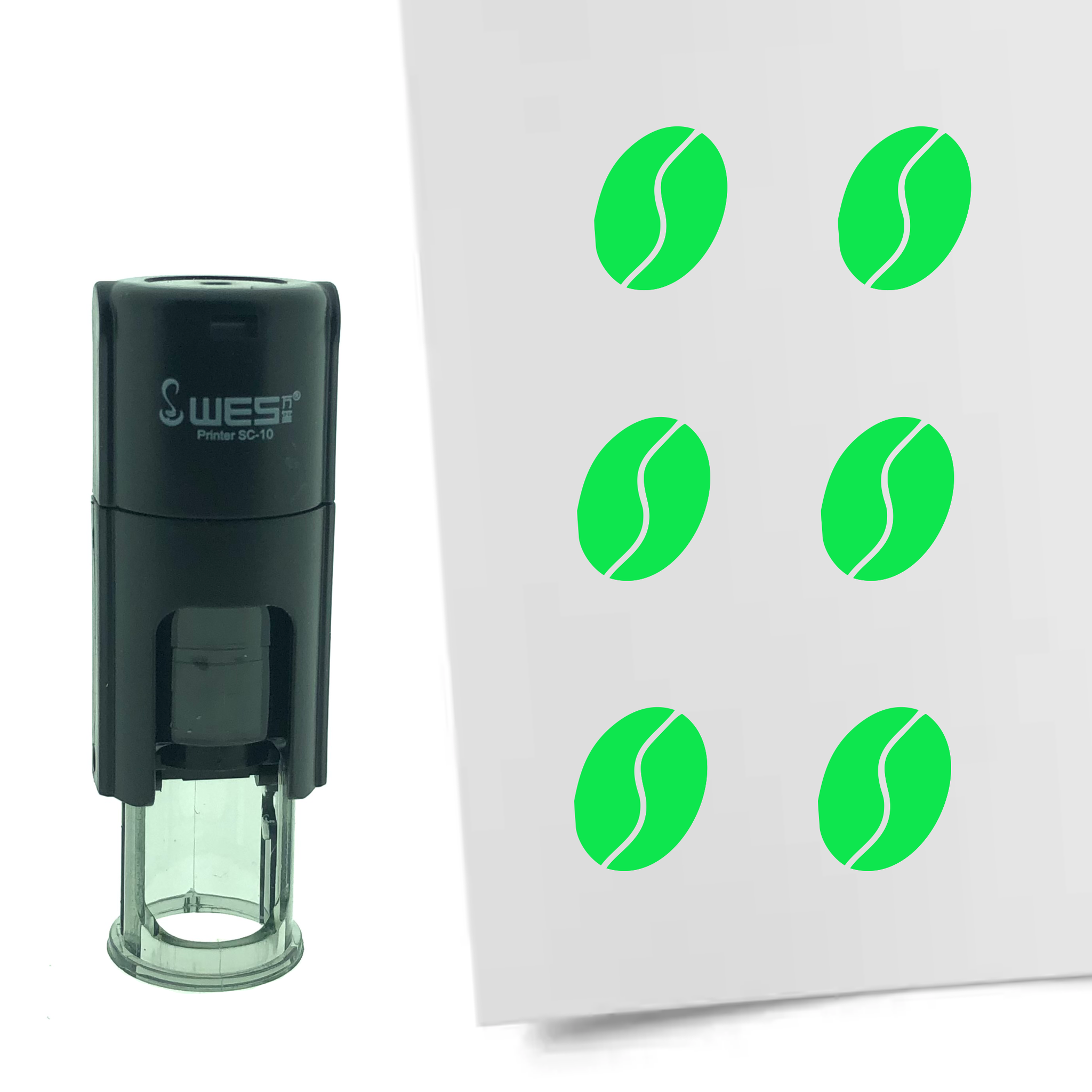 Small stamp of a coffee bean in various colors. This stamp is perfect for customer or loyalty cards, bullet journals, calendars, planners, and more. Each stamp measures 65 x 20 x 20 mm and weighs only 12 grams, making it easy to carry and store. The print surface is approx. 10 mm. Each stamp has an internal ink pad, so you can start stamping right away.