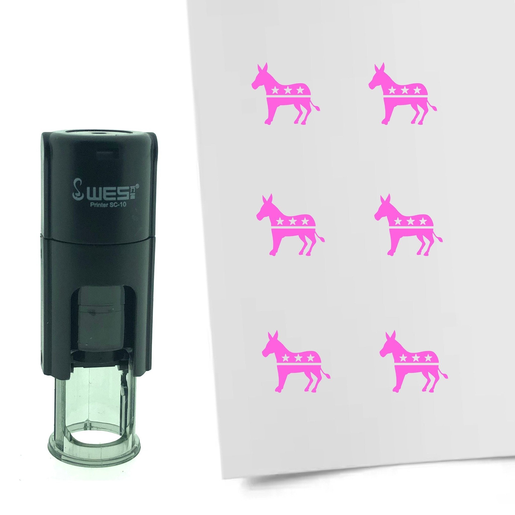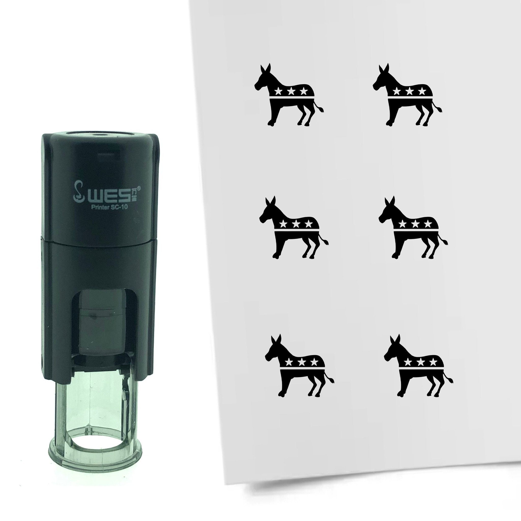 Mini stamp with a 10 mm round print of Democrats in 6 colors. The stamp can be used for stamping loyalty cards, punch cards, bullet journals, planners, and more. It has a refillable ink pad. Read more