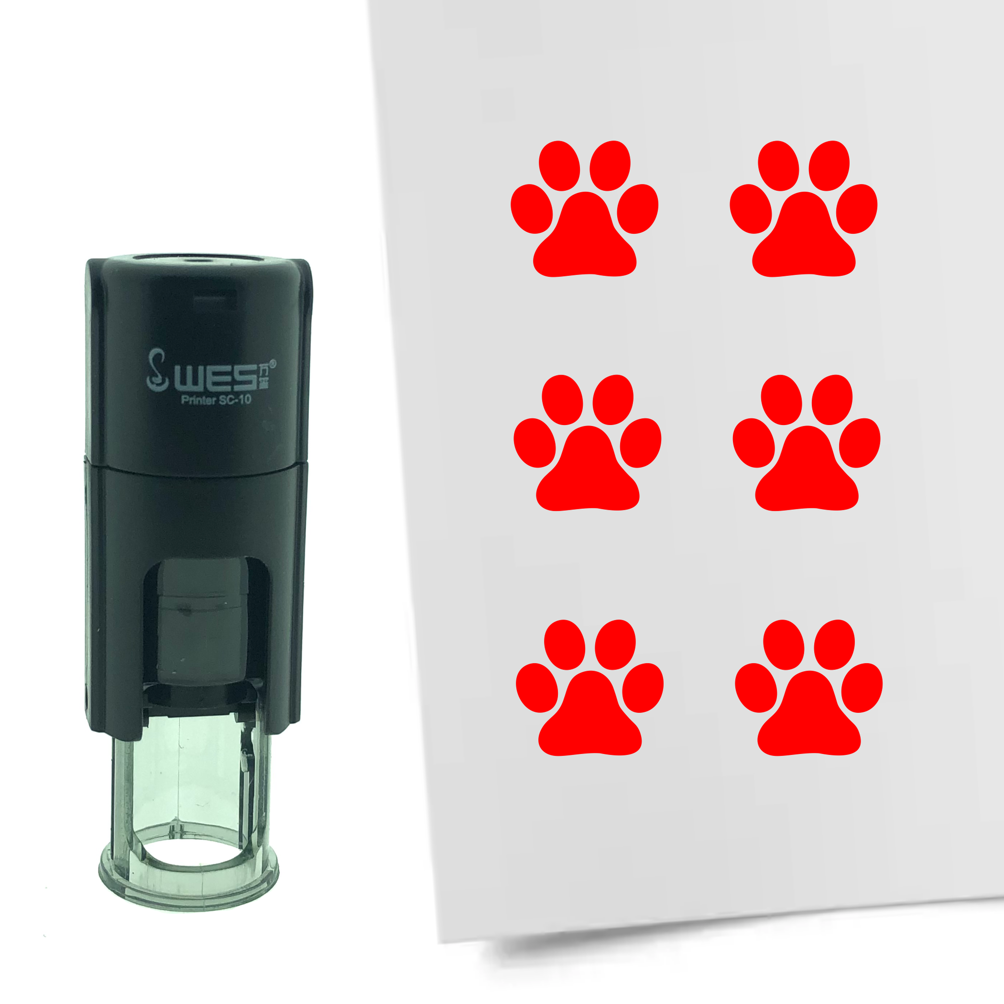 Mini stamp with a 10 mm round print of a dog paw in 6 colors. The stamp can be used for stamping loyalty cards, punch cards, bullet journals, planners, and more. It has a refillable ink pad. Read more