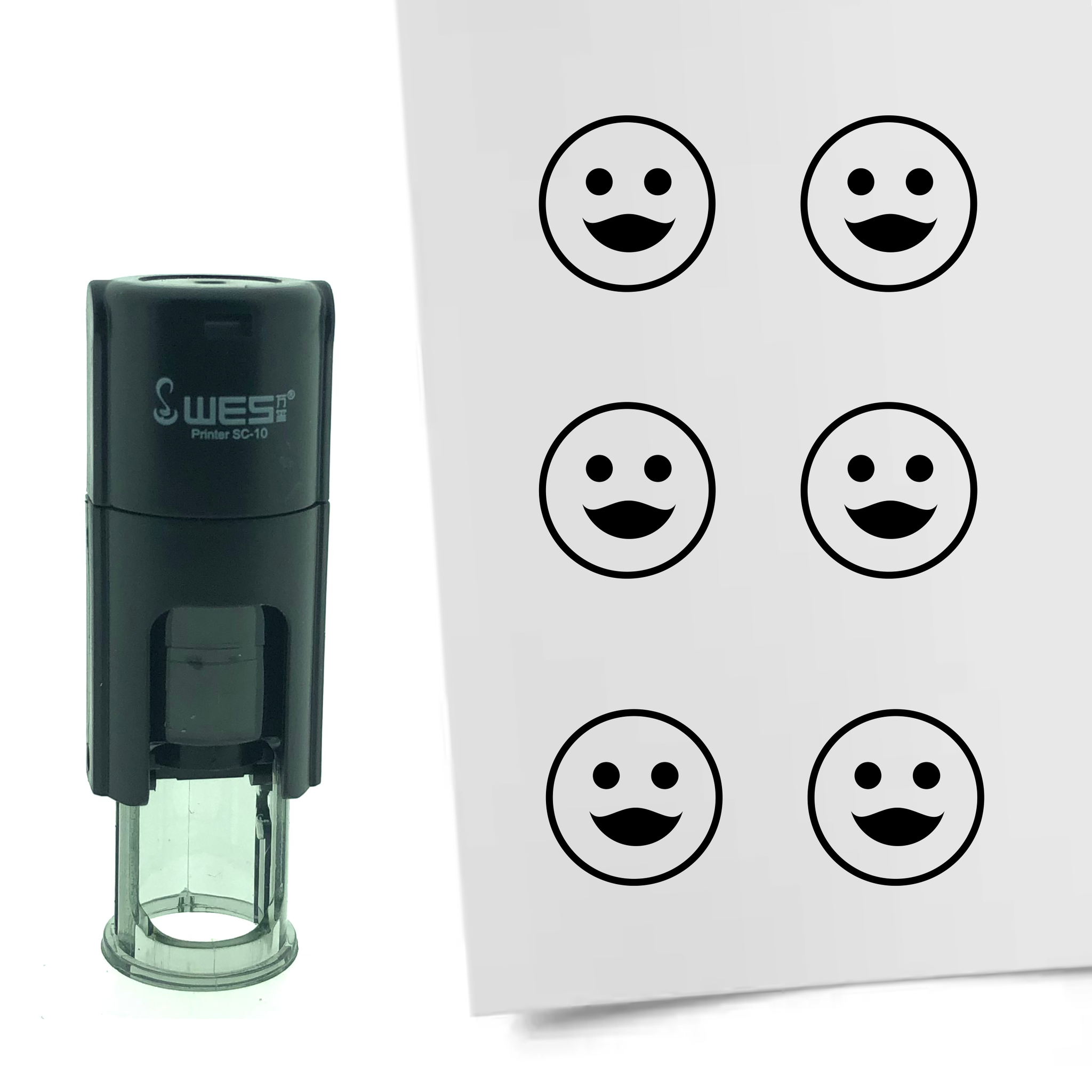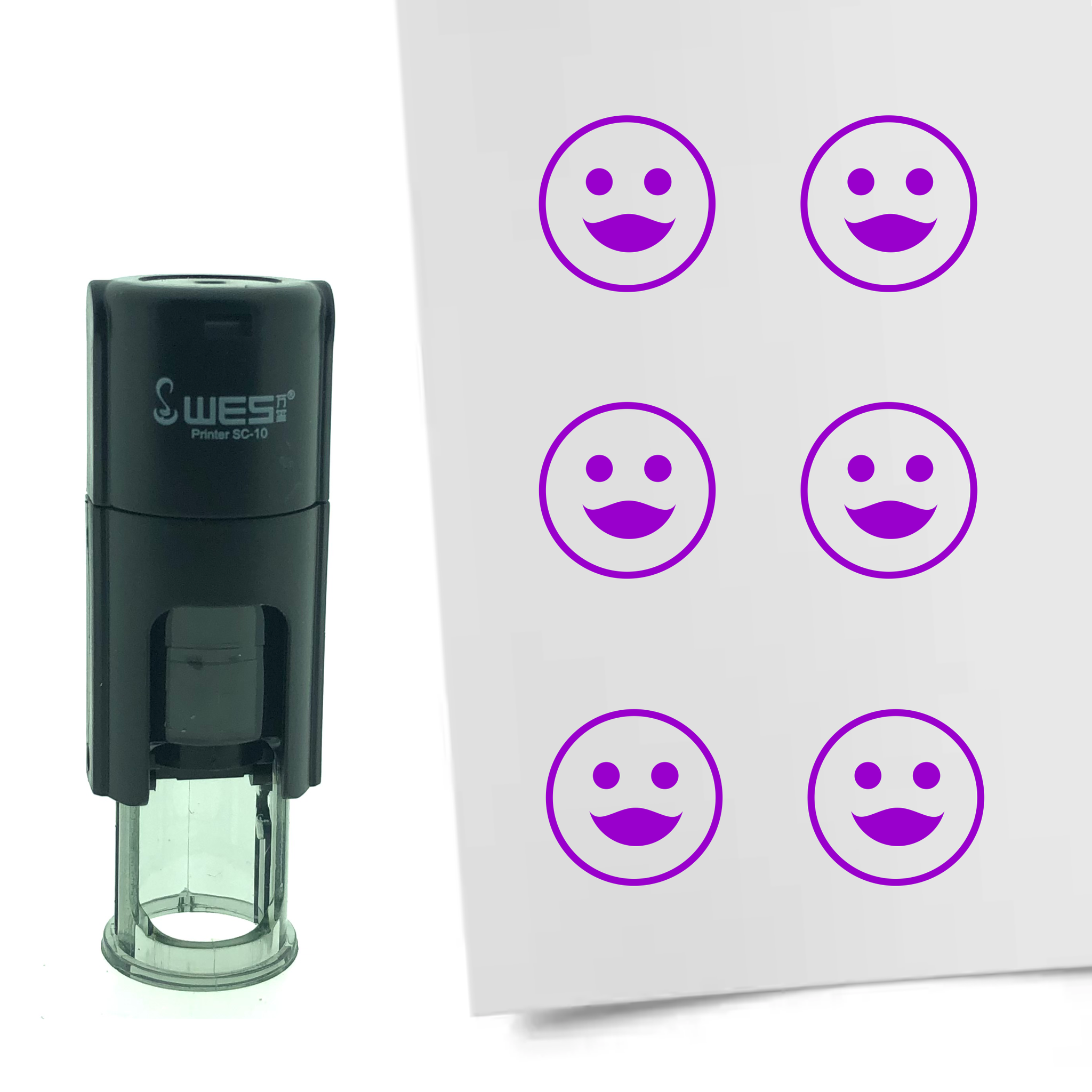 Mini stamp with a 10 mm round print of a feminine smiley in 6 colors. The stamp can be used for stamping loyalty cards, punch cards, bullet journals, planners, and more. It has a refillable ink pad. Read more