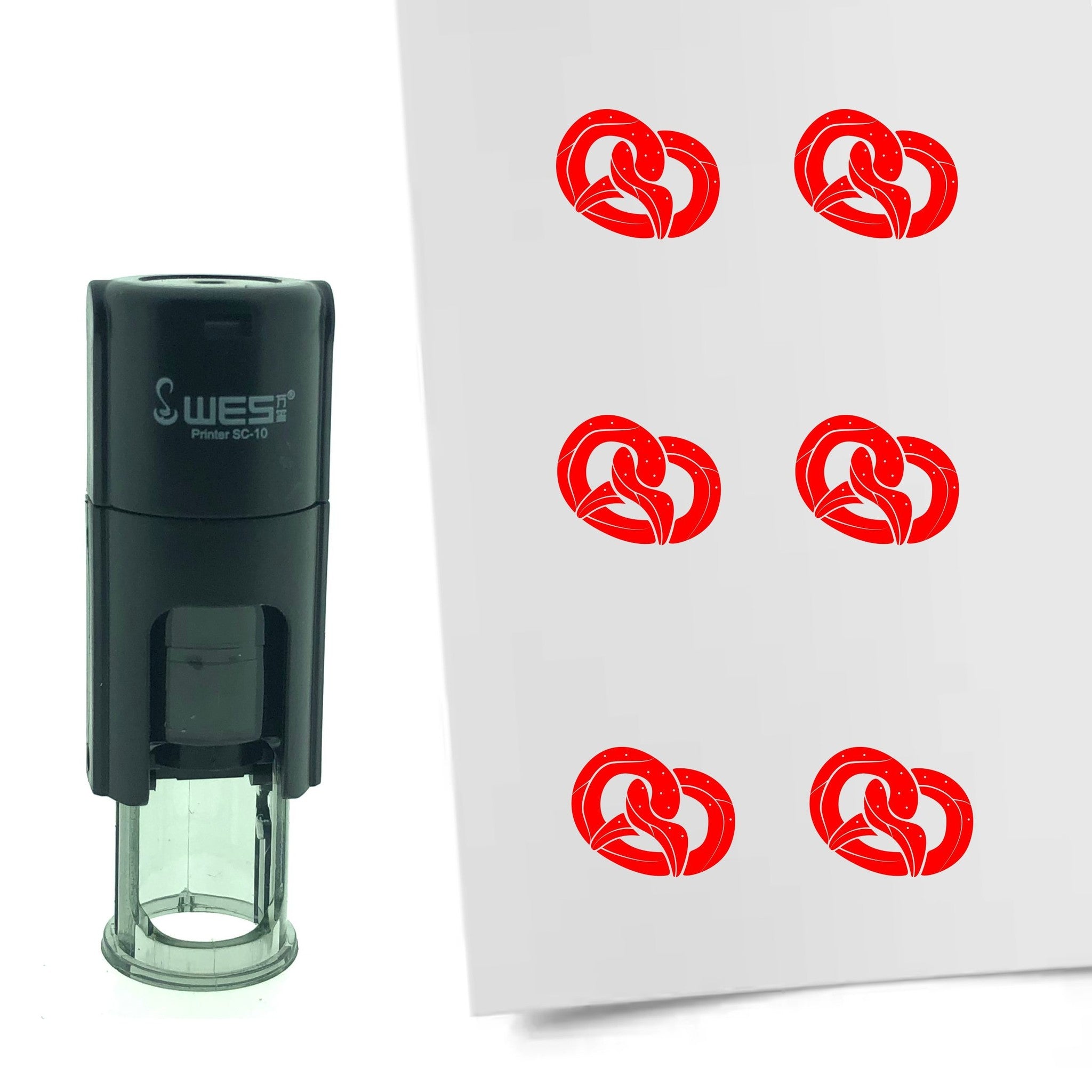 Mini stamp with a 10 mm round print of a pretzel in 6 colors. The stamp can be used for stamping loyalty cards, punch cards, bullet journals, planners, and more. It has a refillable ink pad. Read more