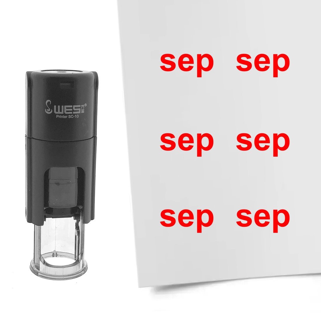 Mini stamp with a 10 mm round print of the month September in 6 colors. The stamp can be used for stamping loyalty cards, punch cards, bullet journals, planners, and more. It has a refillable ink pad.