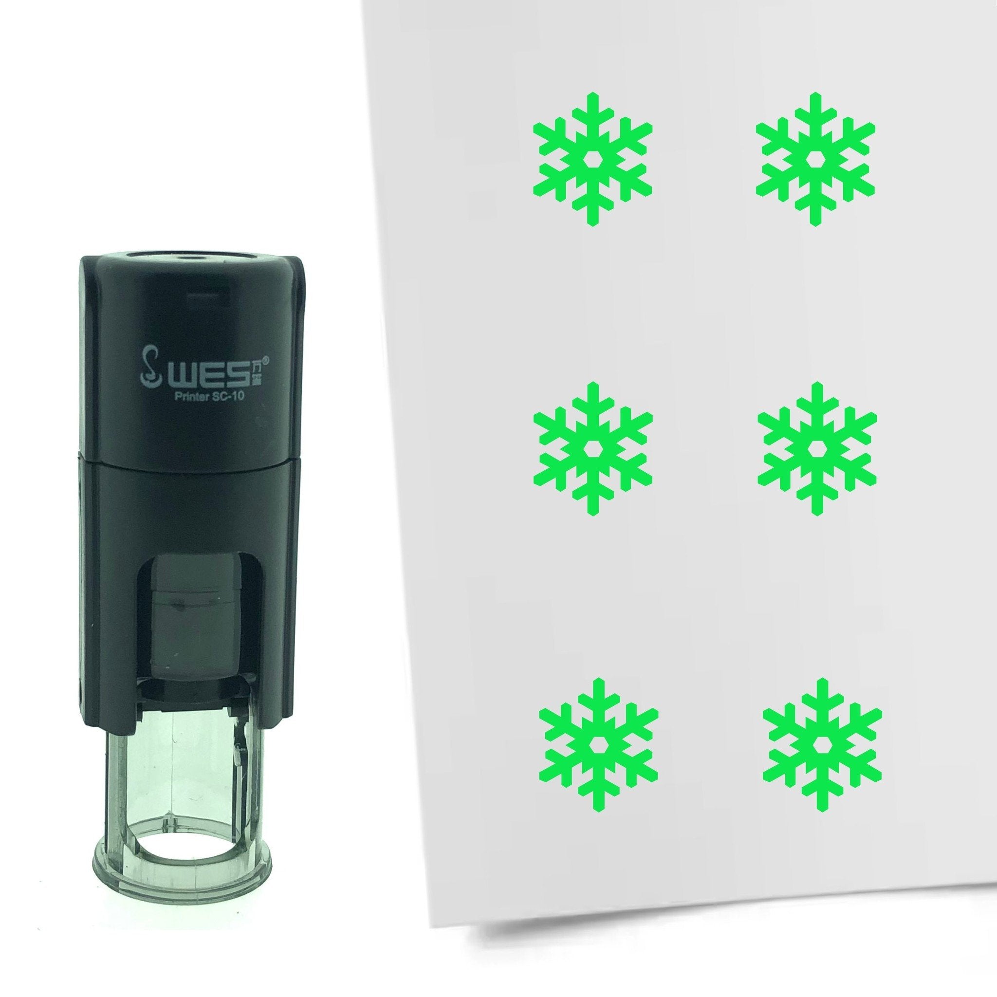 Mini stamp with a 10 mm round print of a snowflake in 6 colors. The stamp can be used for stamping loyalty cards, punch cards, bullet journals, planners, and more. It has a refillable ink pad. Read more