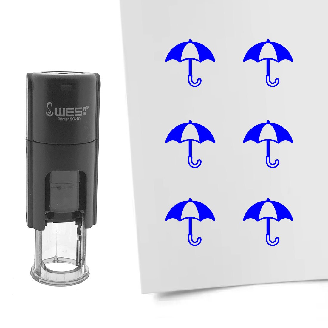 Mini stamp with a 10 mm round print of an umbrella in 6 colors. The stamp can be used for stamping loyalty cards, punch cards, bullet journals, planners, and more. It has a refillable ink pad. Read more
