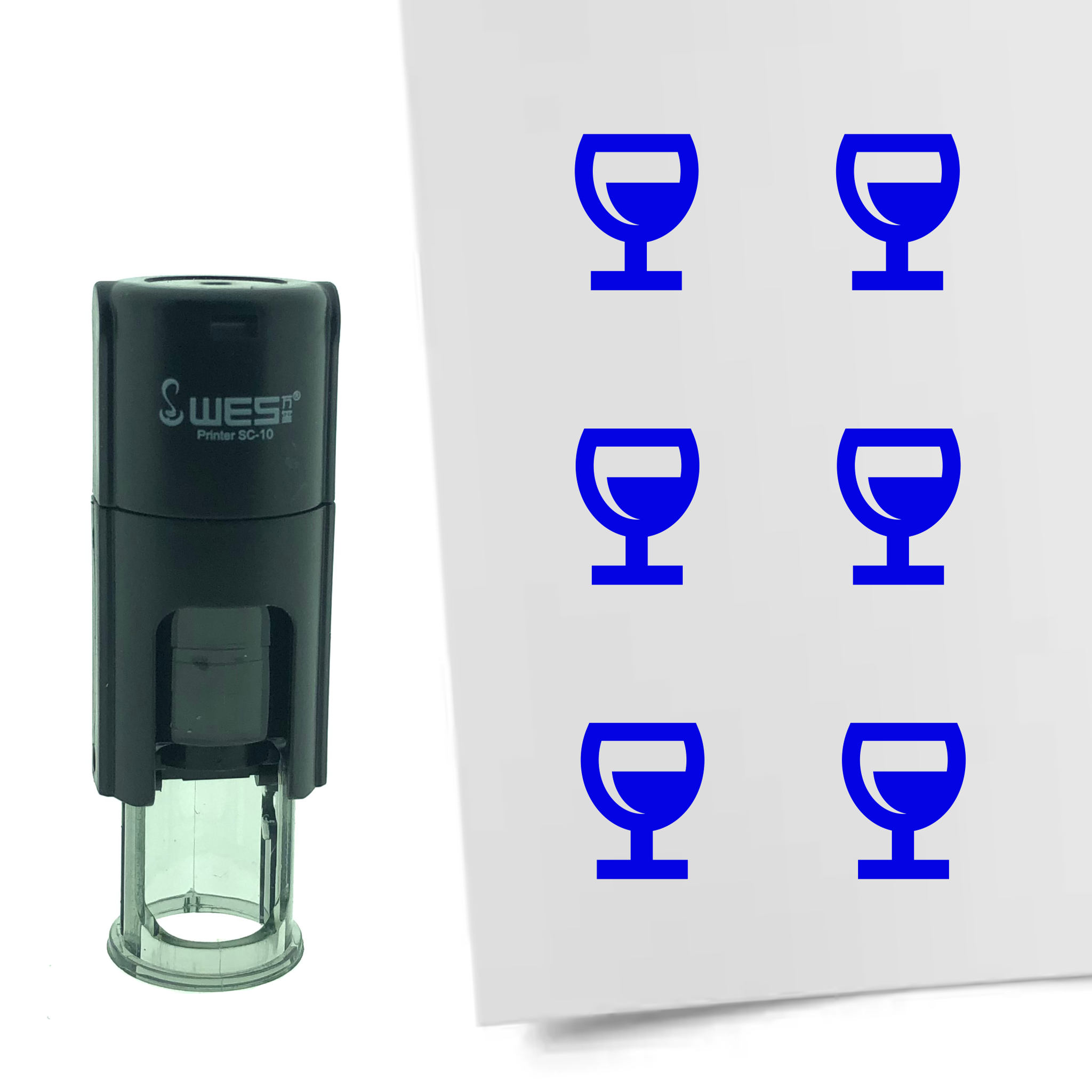 Mini stamp with a 10 mm round print of a wine glass in 6 colors. The stamp can be used for stamping loyalty cards, punch cards, bullet journals, planners, and more. It has a refillable ink pad. Read more