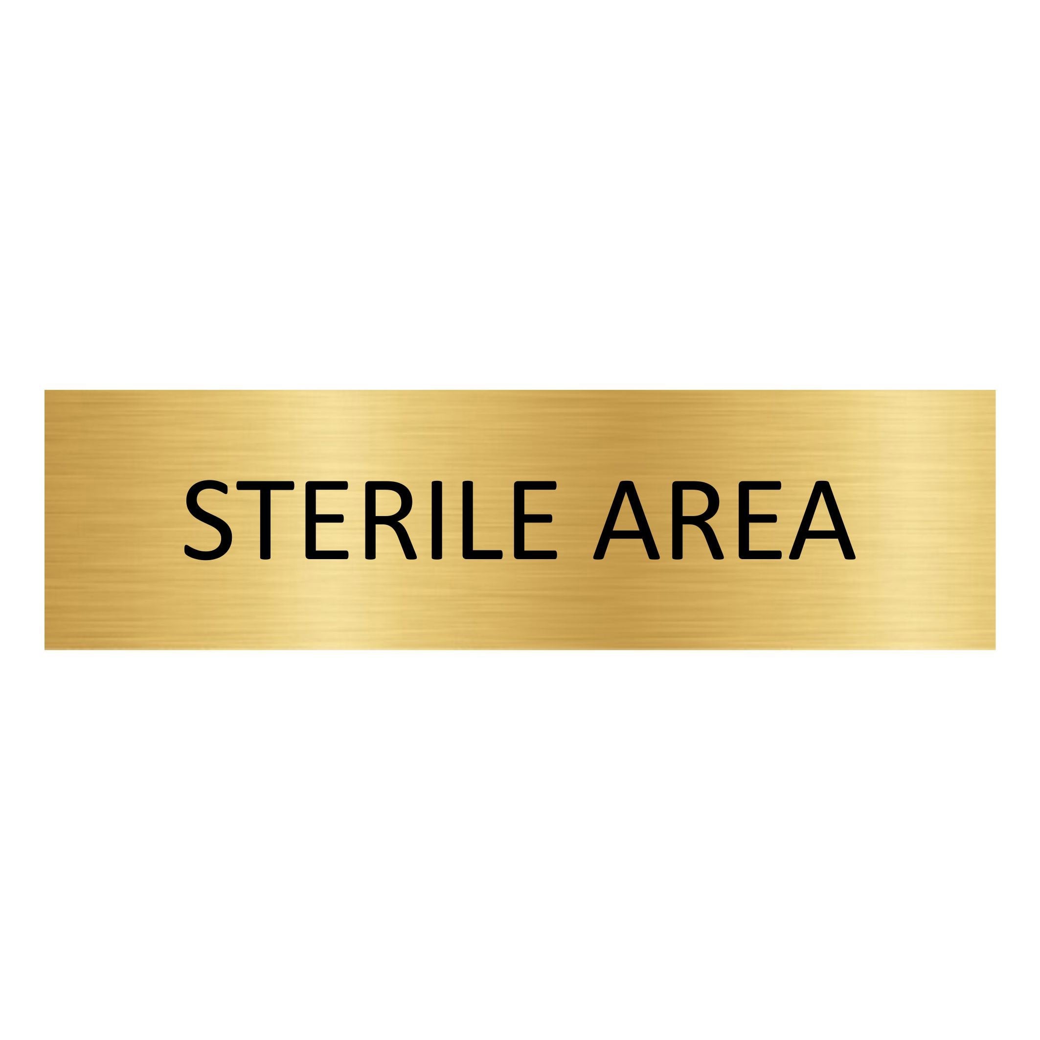 Gold-colored door sign featuring the text 'Sterile area', made of high quality aluminum. The sign measures 165 x 45 mm and has double-sided tape for easy mounting. Suitable for indoor and outdoor use. Sold individually.
