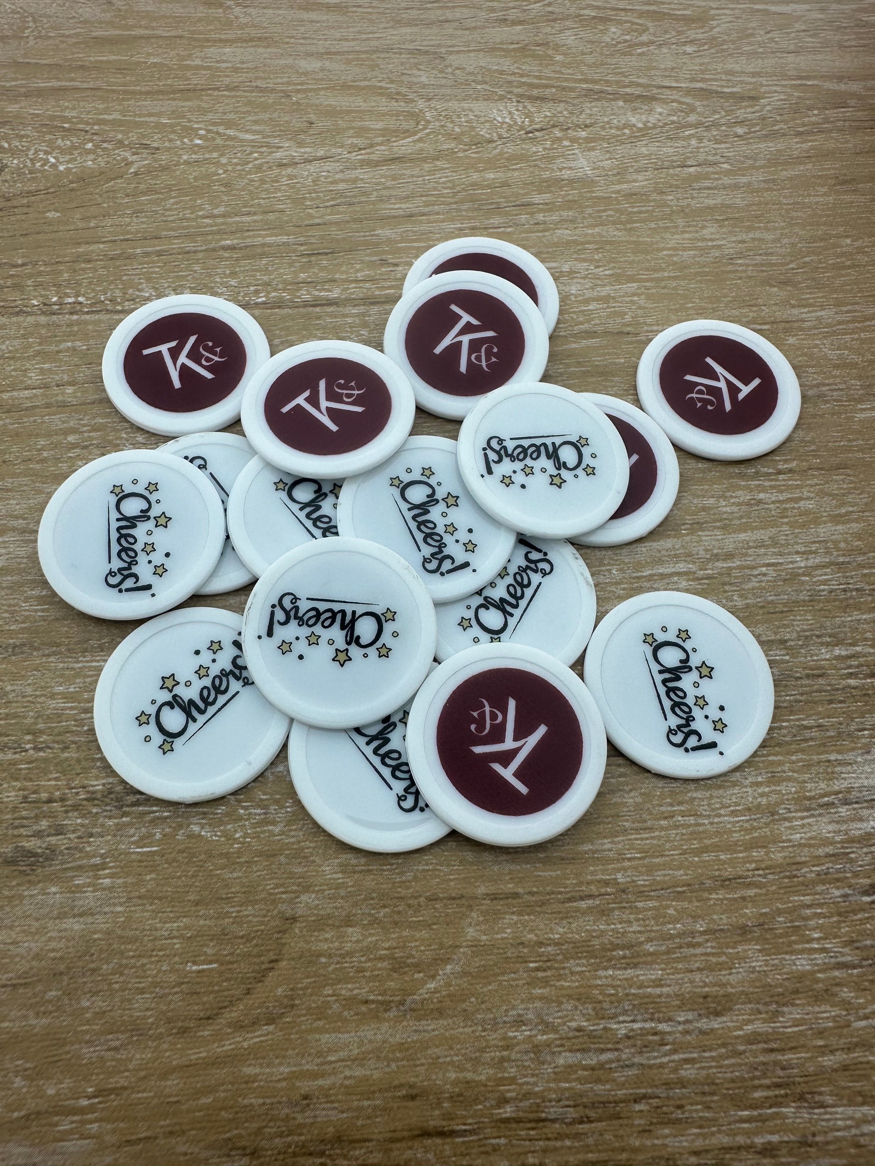 Please note: for smaller quantities, the print may not always be exactly centered due to the type of machine used. This is most noticeable with round tokens. If you choose a different shape, it will be less visible. For orders of 6,000 pieces or more, we can center the print precisely.