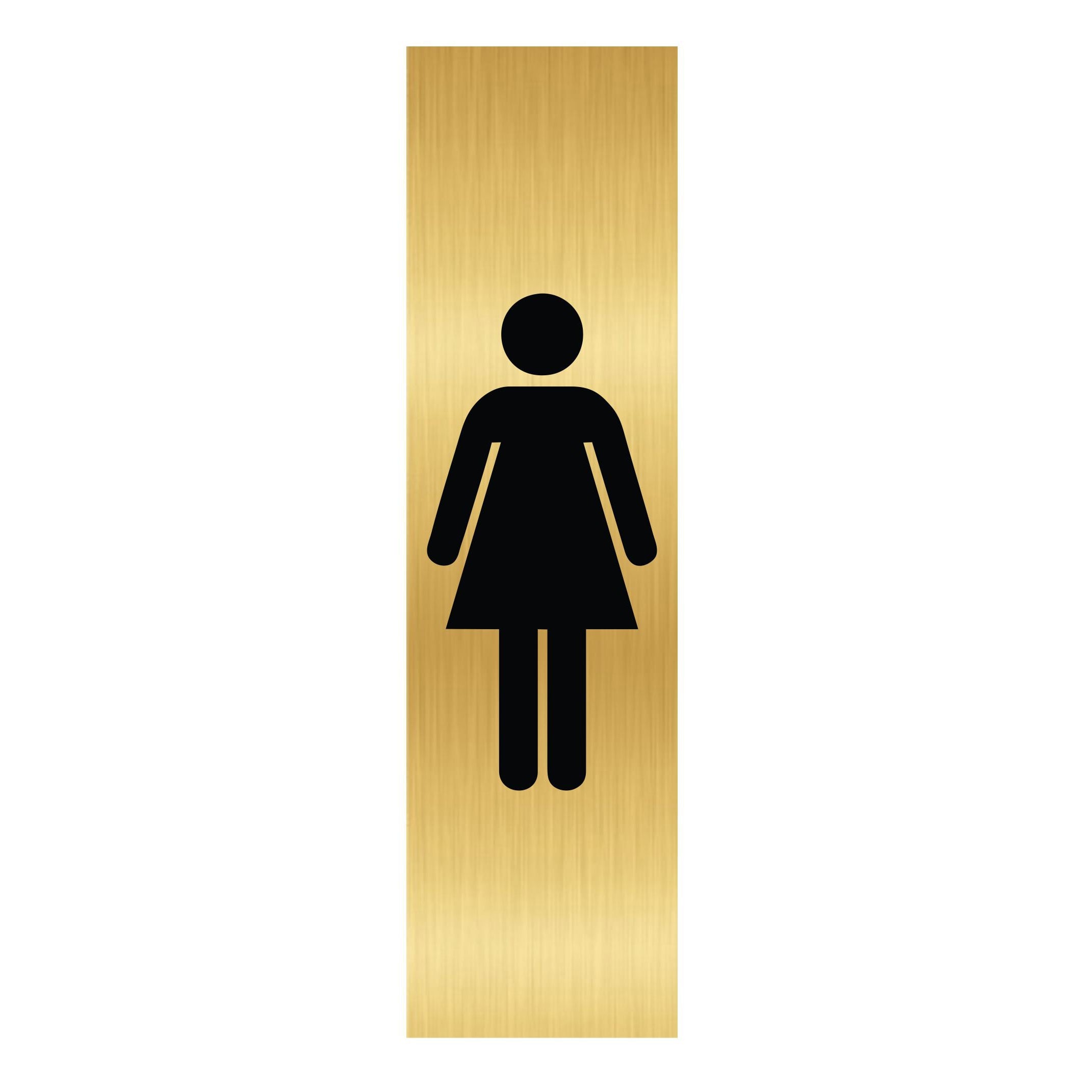Door sign with a women’s symbol, made of gold-colored aluminum. The sign measures 165 x 45 mm and has double-sided tape for easy mounting. Suitable for indoor and outdoor use. Sold individually. Read more