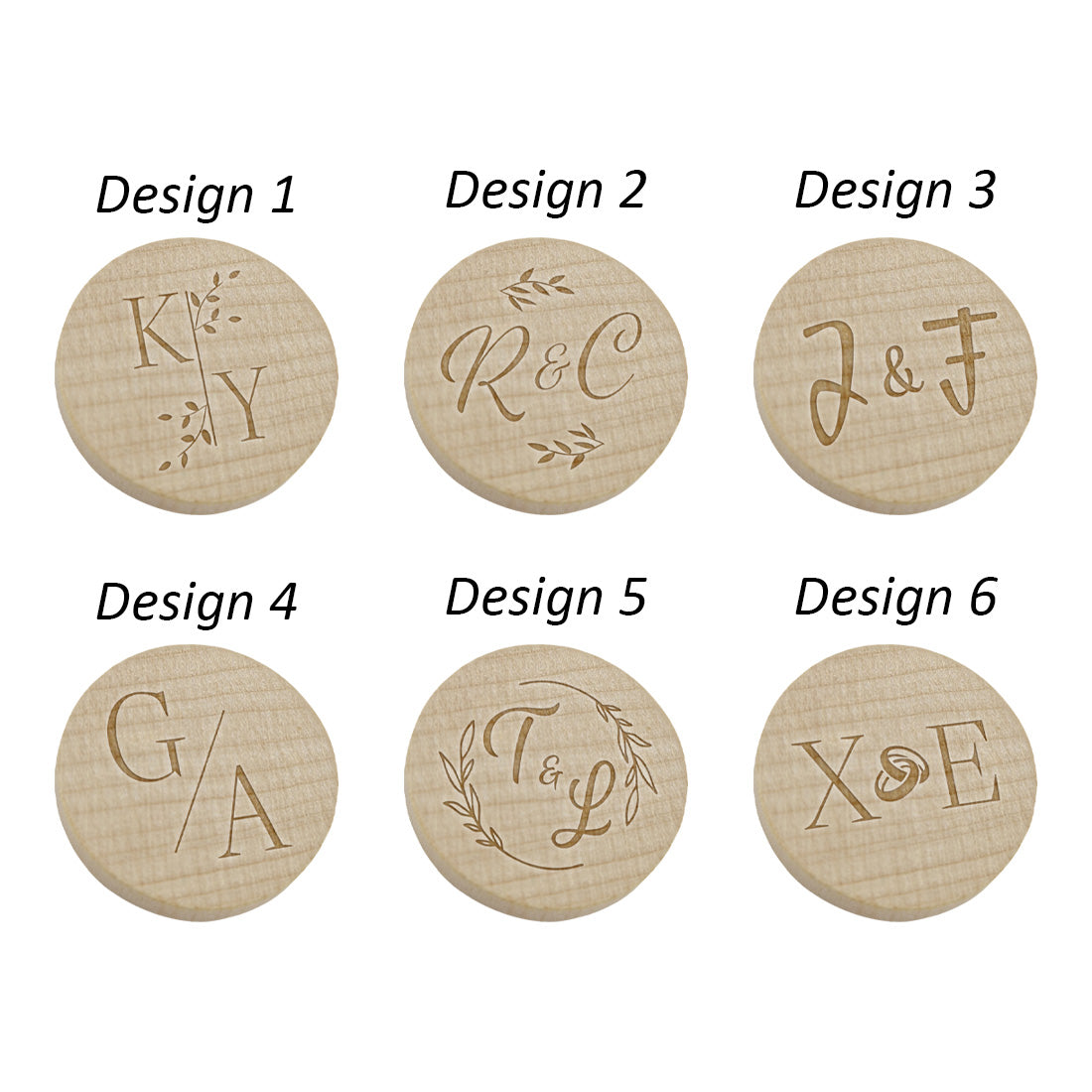 Are you looking for something special for your special day? These wooden tokens with engraved initials add a personal touch. They are ideal as drink tokens instead of an open bar. You can choose from several designs to perfectly match your wedding. Sold in packs of 100.