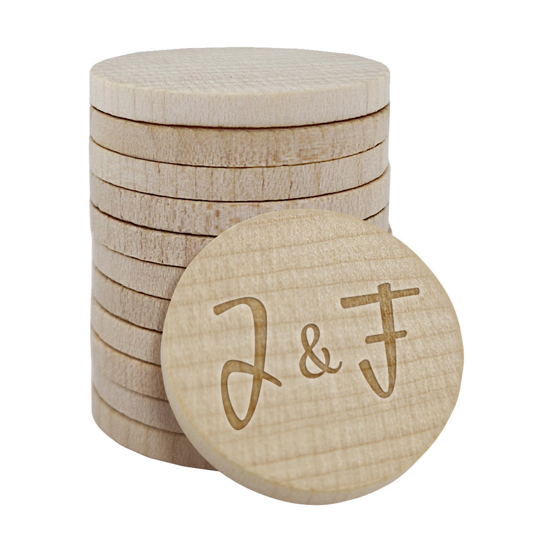Are you looking for something special for your special day? These wooden tokens with engraved initials add a personal touch. They are ideal as drink tokens instead of an open bar. You can choose from several designs to perfectly match your wedding. Sold in packs of 100. Read more