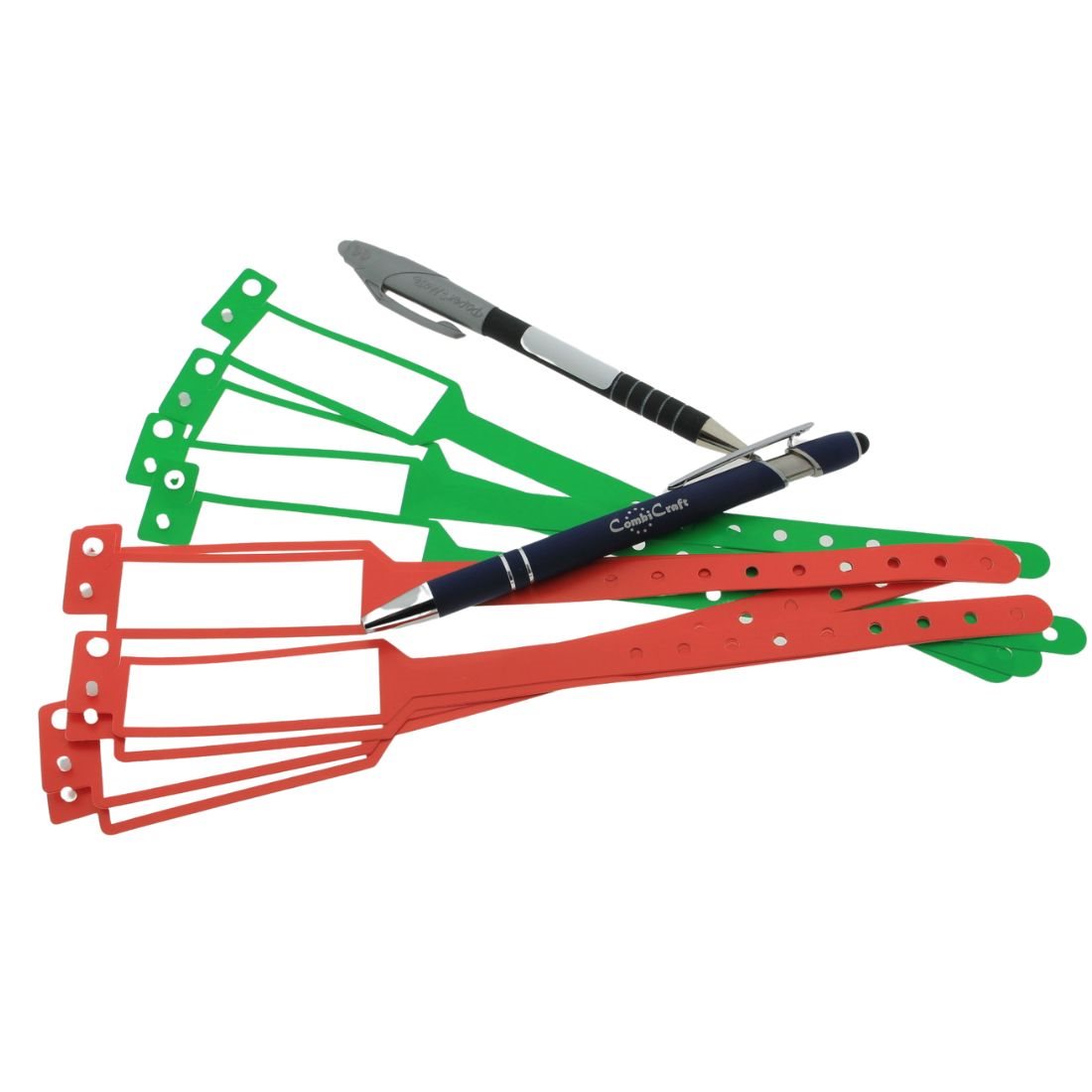 Writeable wristbands made of plastic. These wristbands are suitable for writing on with a pen or waterproof marker. Ideal for events or school trips. The wristbands are water-resistant and have a sturdy snap closure. Pack contains 100 wristbands. Read more