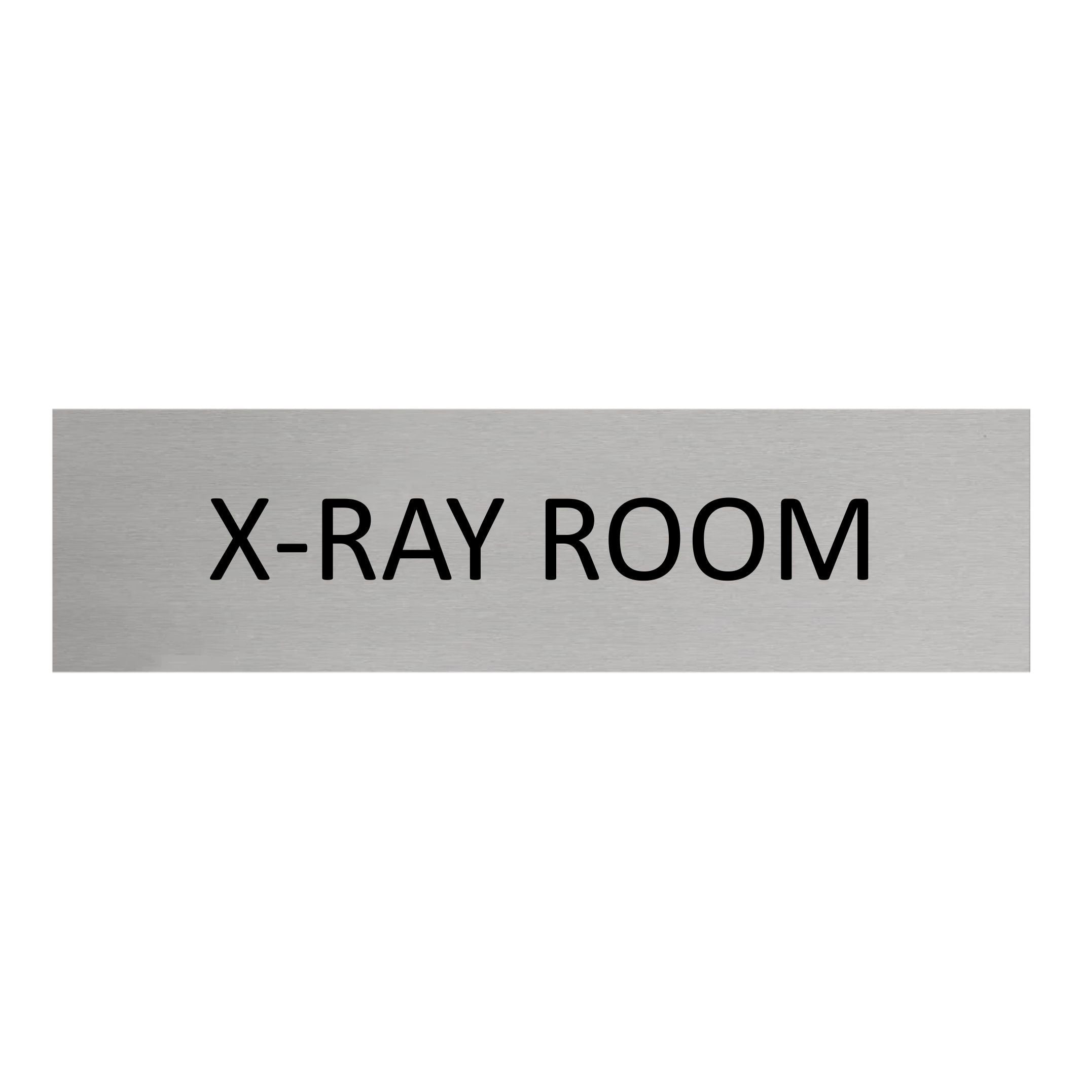 Door sign featuring the text 'X-ray room', made of silver-colored aluminum. The sign measures 165 x 45 mm and has double-sided tape for easy mounting. Suitable for indoor and outdoor use. Sold individually.