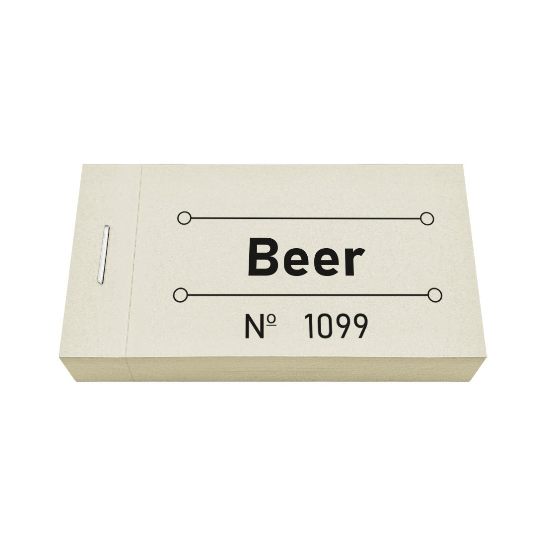 Drink ticket beer pastel yellow on a pad with 50 tickets